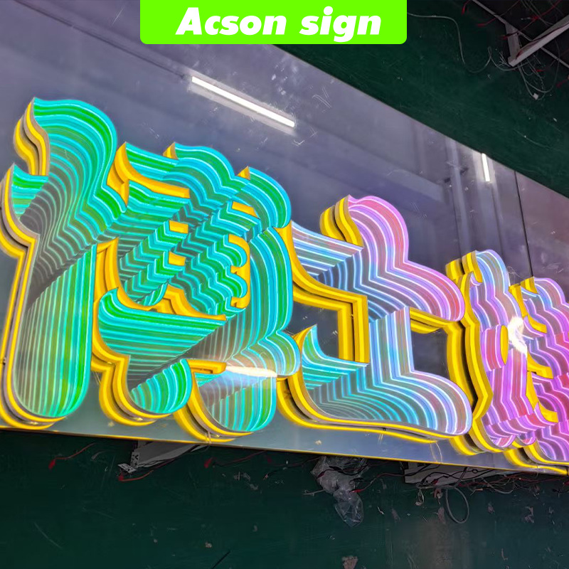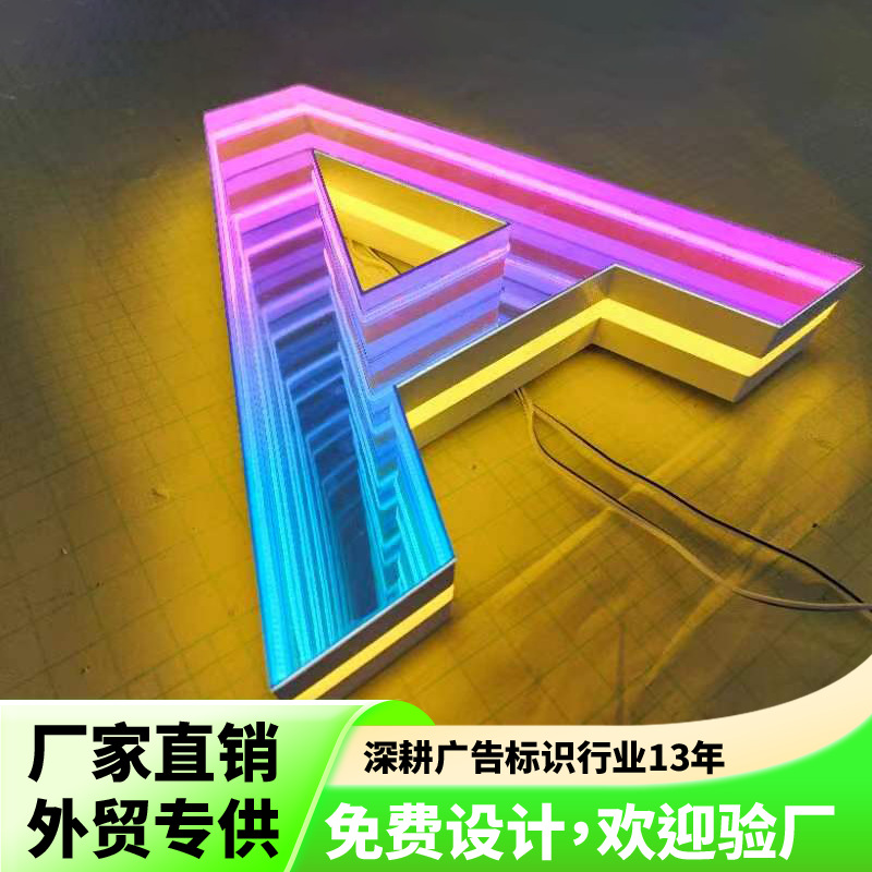 Светящиеся персонажи, тысяча слоев зеркала, пейзажные персонажи, 3D красочный бездна, неоновые огни, популярный бар, туннель, зеркало, уличная вывеска для двери