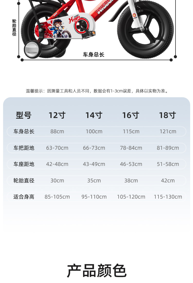 12inch Рекомендуемая высота 85- 105cm; 14inch Рекомендуемый рост 95- 110cm; 16inch Рекомендуемый рост 105- 120cm; 18inch Рекомендуемый рост 115- 130cm
