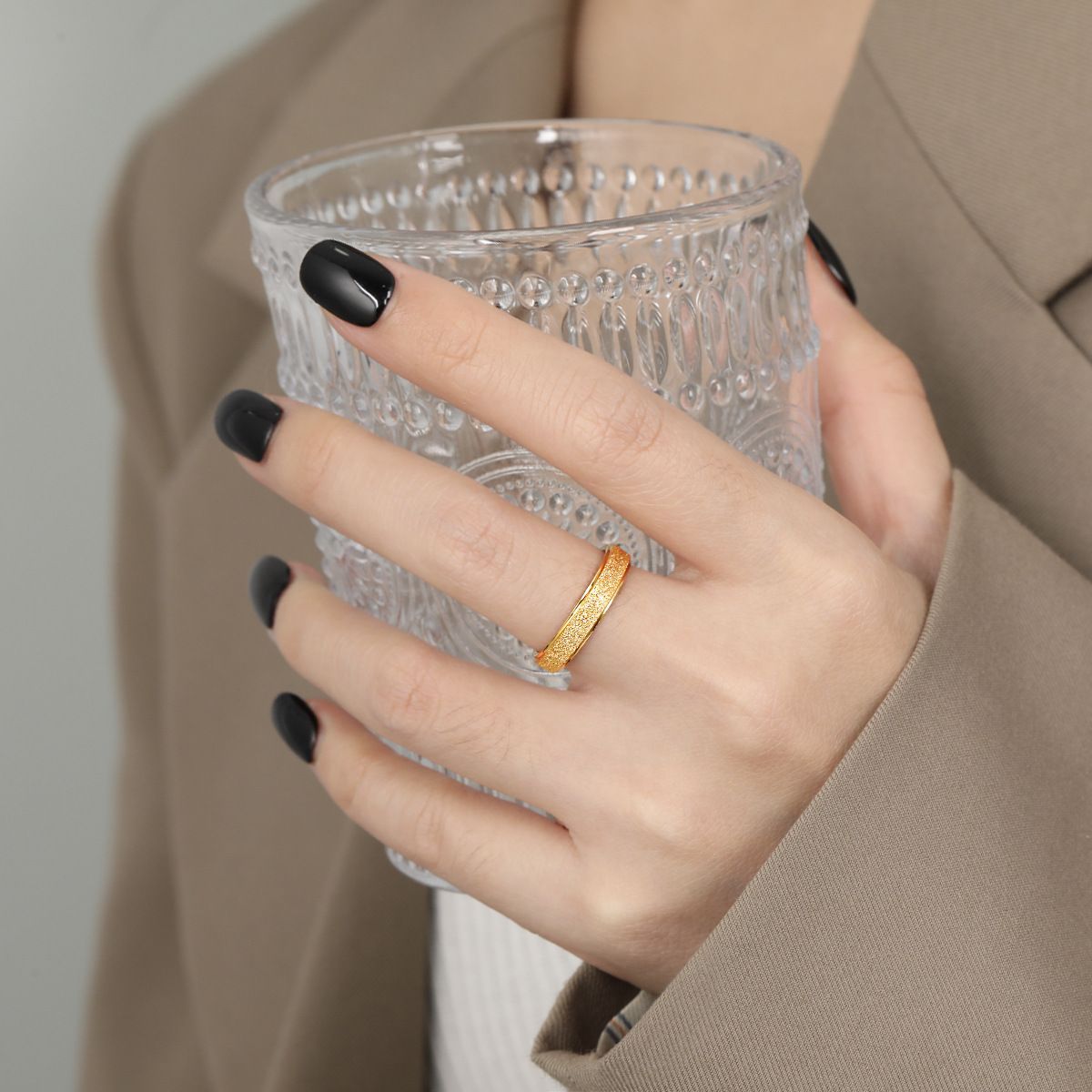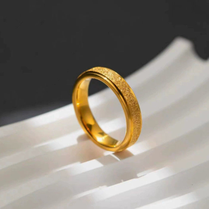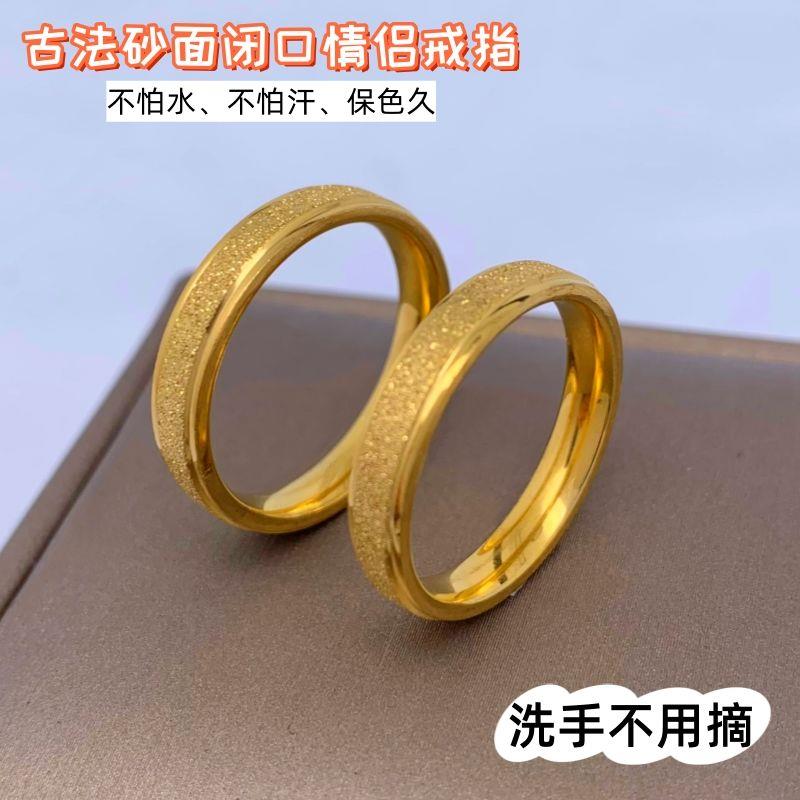 (Кольцо из титановой стали не выцветает) Мужские и женские парные кольца с матовой золотой поверхностью, пара колец из песочного золота с детским дыханием и универсальность