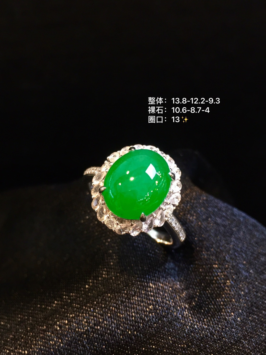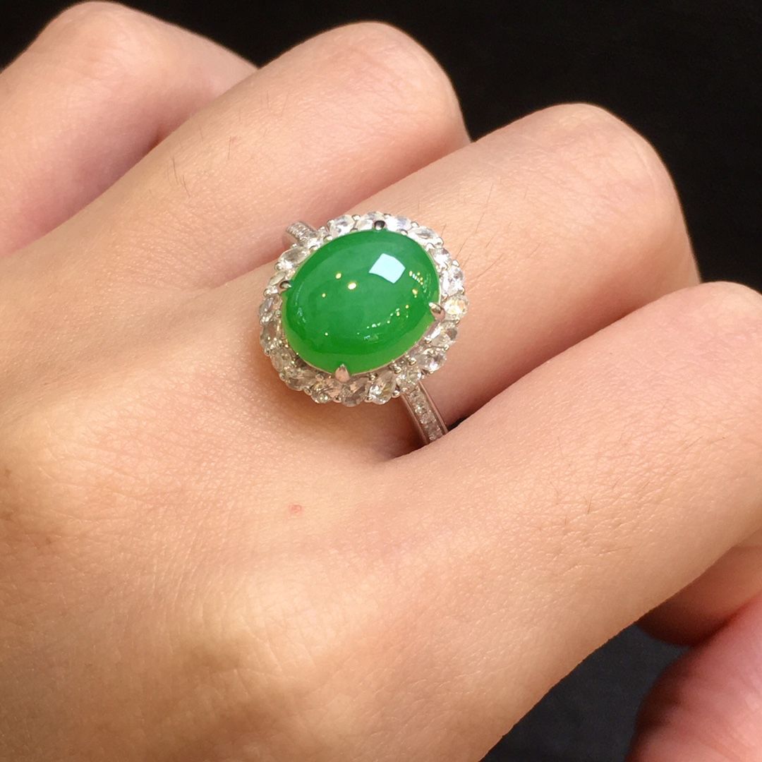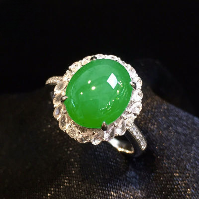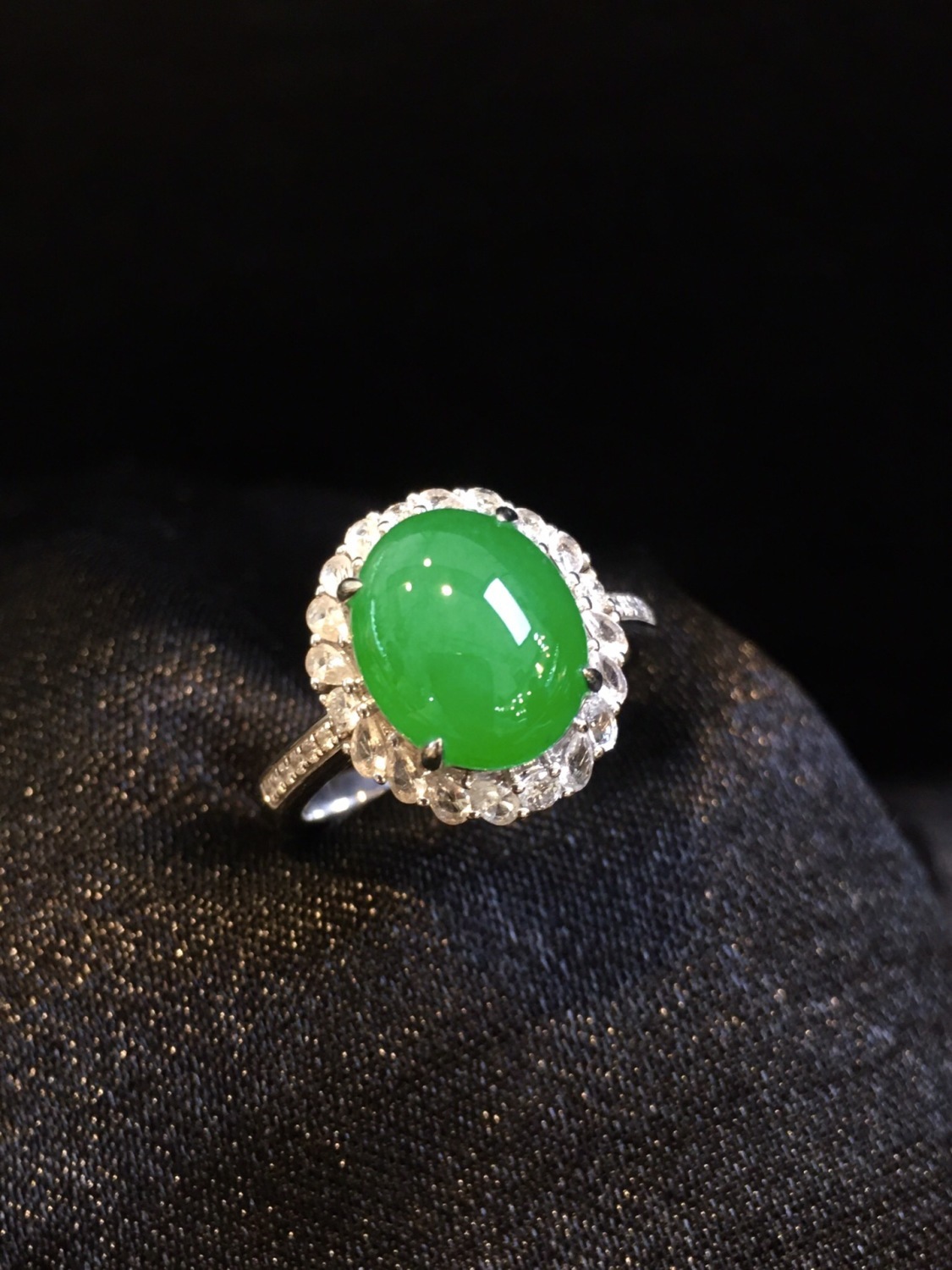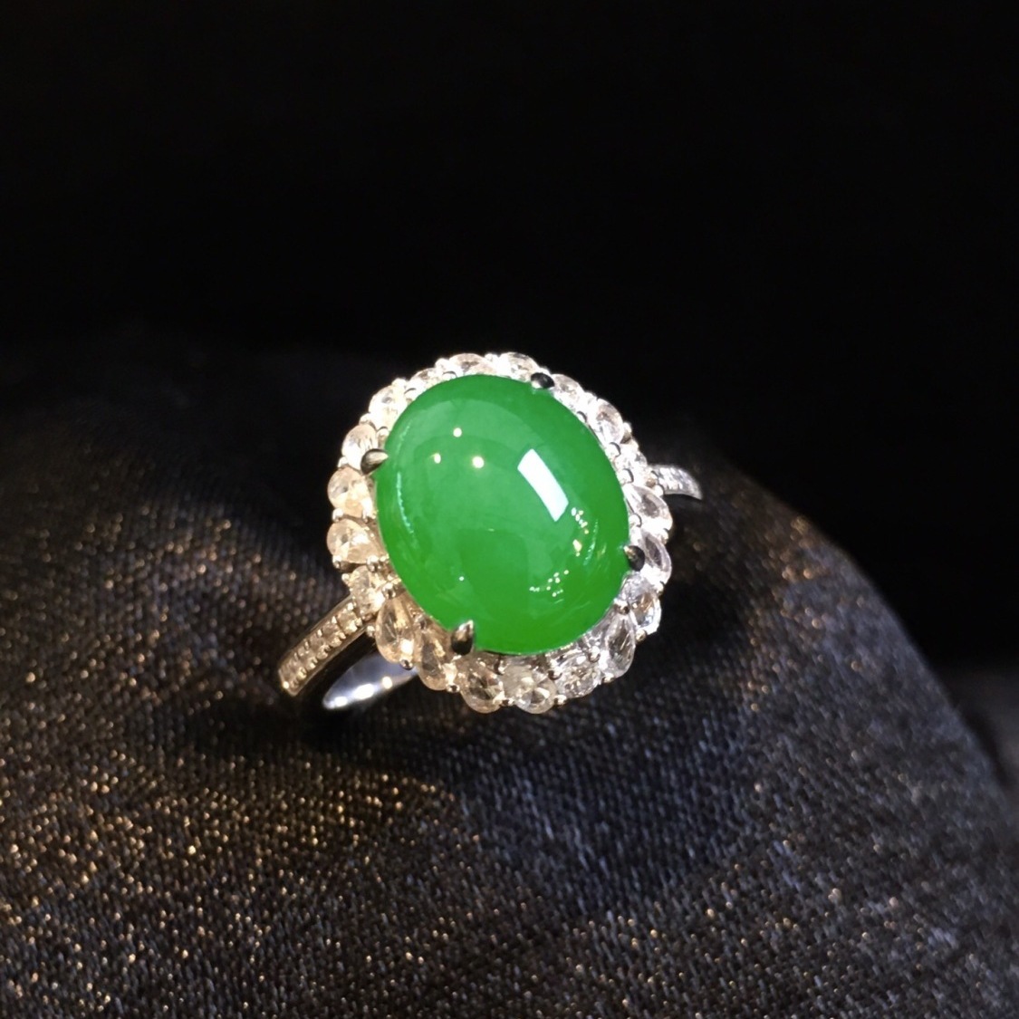 Runjia Ice Type Yang Green Egg Кольцо для лица Серебро 925 пробы, инкрустированное натуральным бирманским нефритом Тип Старая вода Влажность Зеленый цвет Яркий