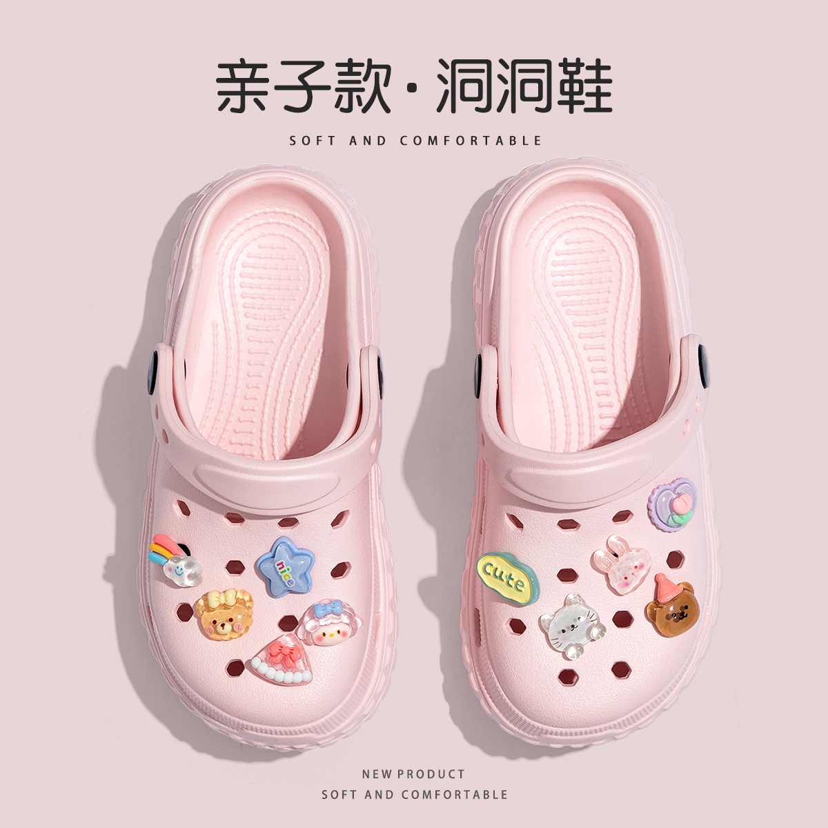 Детская обувь «крокодил» для девочек, лето 2025, новая мягкая подошва, домашняя нескользящая уличная одежда для родителей и детей, пляжные сандалии и тапочки для девочек