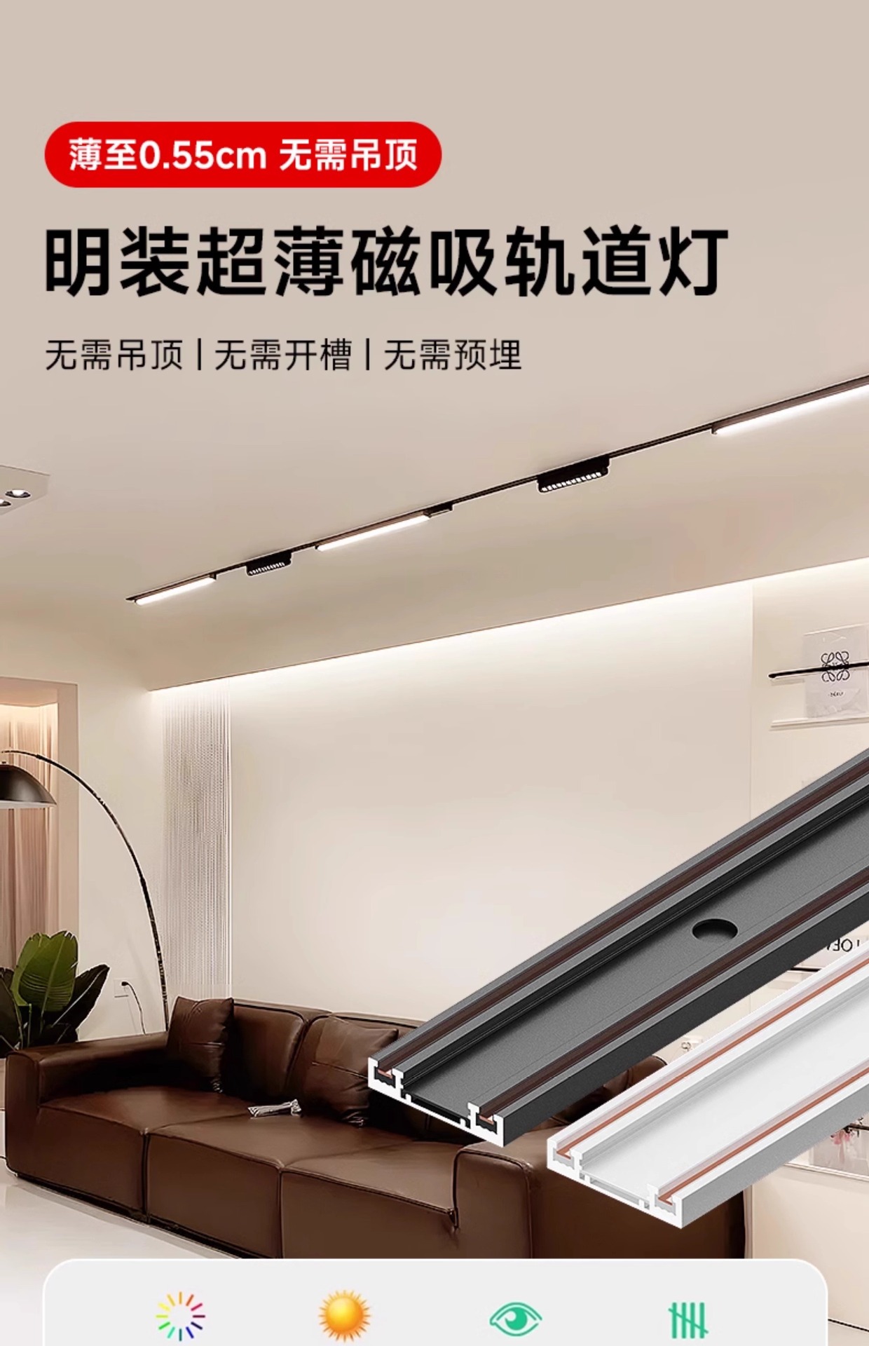 Ультратонкий магнитный трековый светильник толщиной 0,5 см для коридора спальни без основного освещения, без потолка, линейное освещение гостиной.