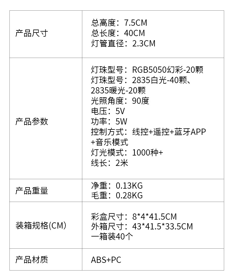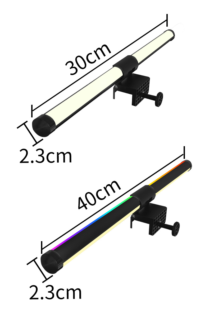 Односторонний трехцветный светильник - 30 см.; Односторонний трехцветный светильник - 45 см.; Двусторонний RGB с эффектом магического цвета + трехцветная подсветка — 40 см