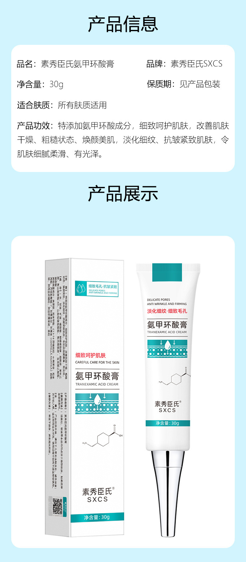 Крем с транексамовой кислотой Су Сючэнь Оригинальный раствор транексамовой кислоты улучшает тусклость, увлажняет, восстанавливает и осветляет кожу. Средства по уходу за кожей
