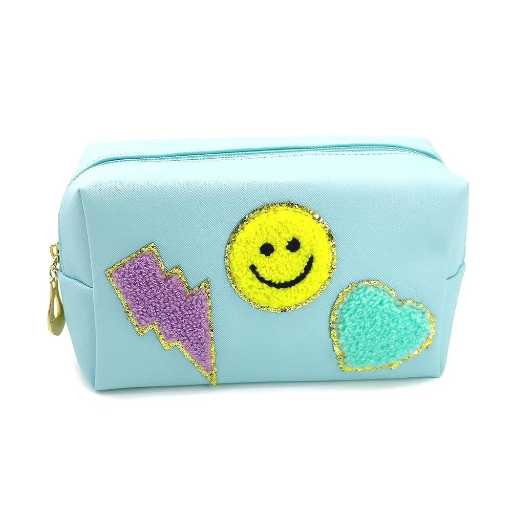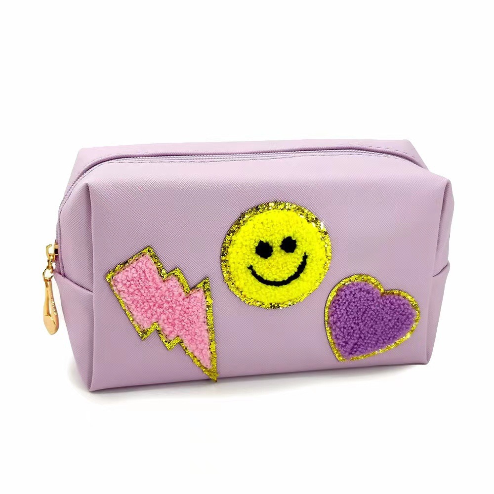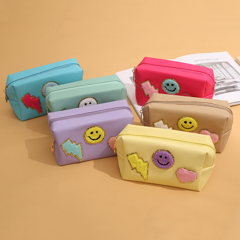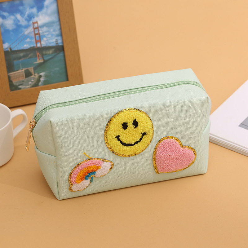 Новая косметичка с радужным смайликом, косметичка с молнией, сумка для мытья, сумка для хранения полотенец с вышивкой букв