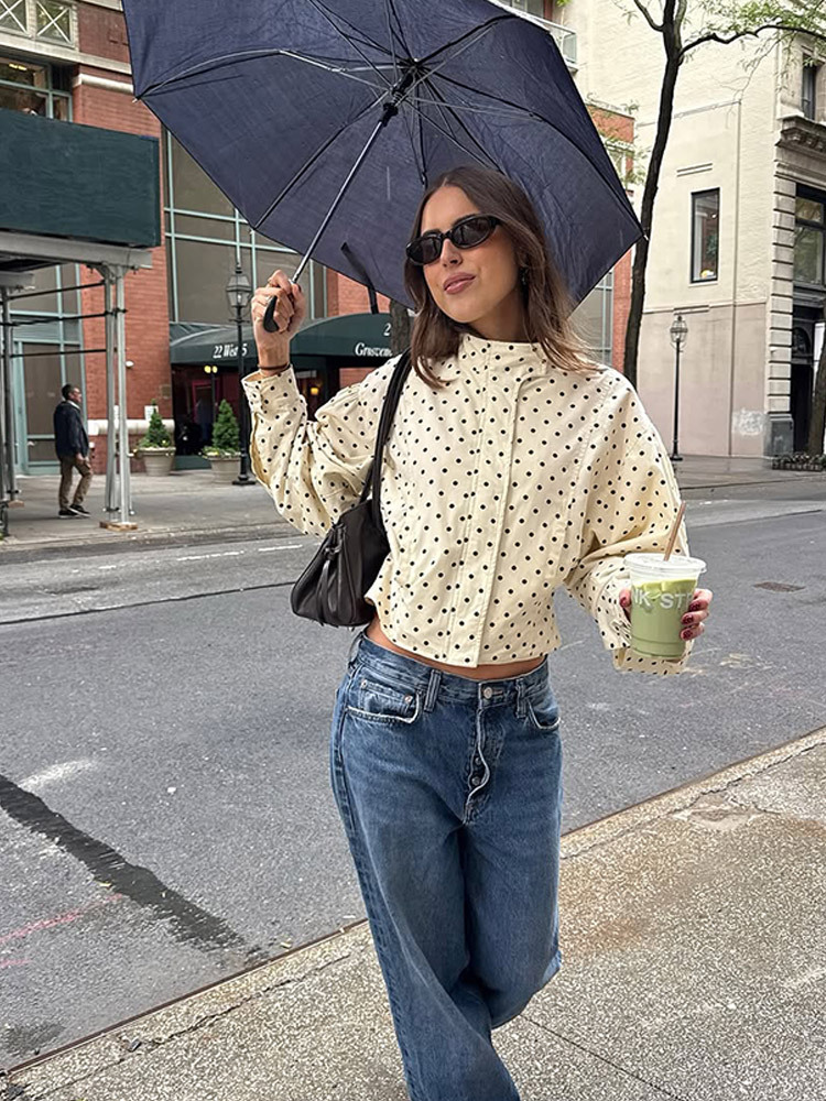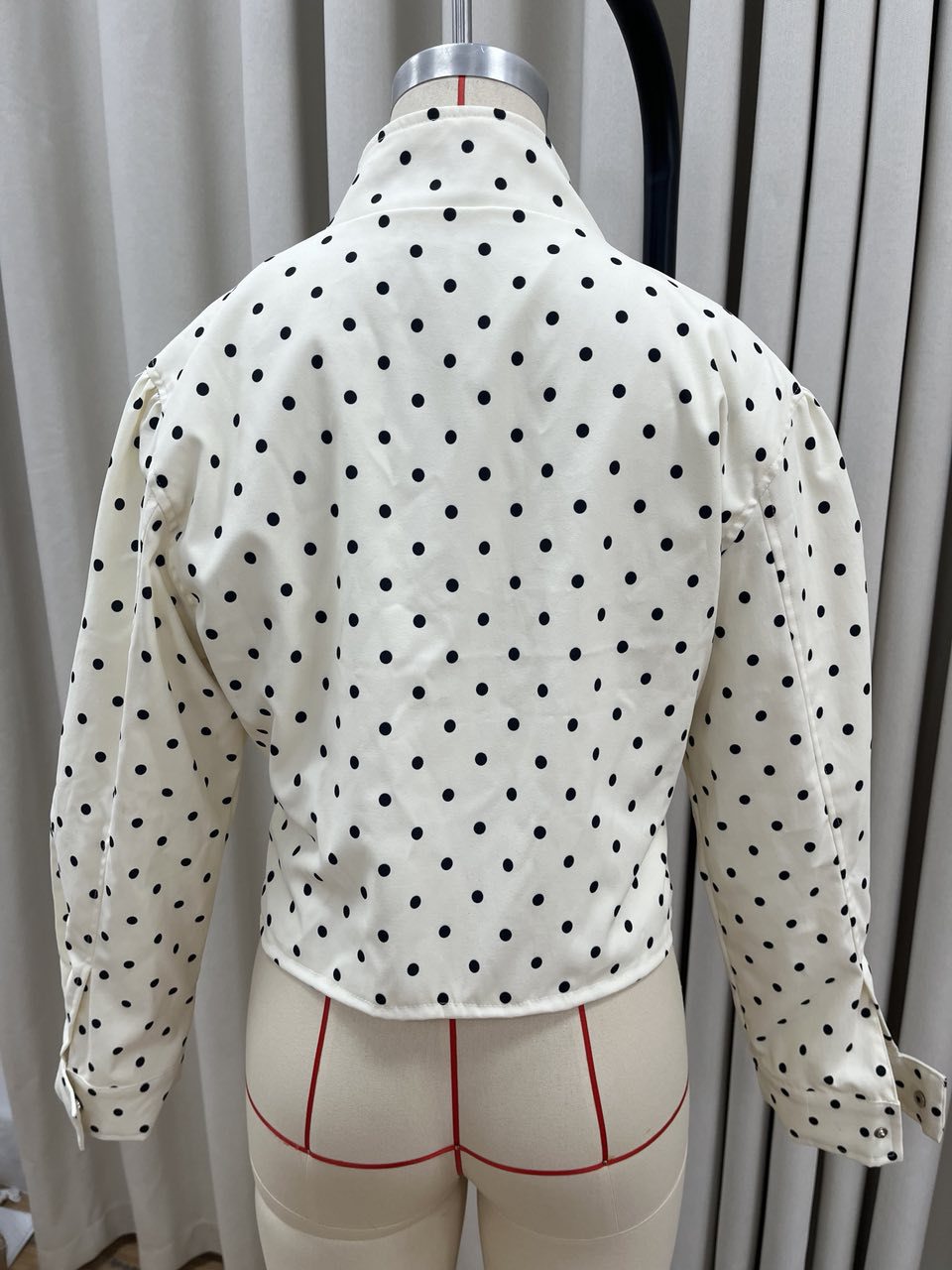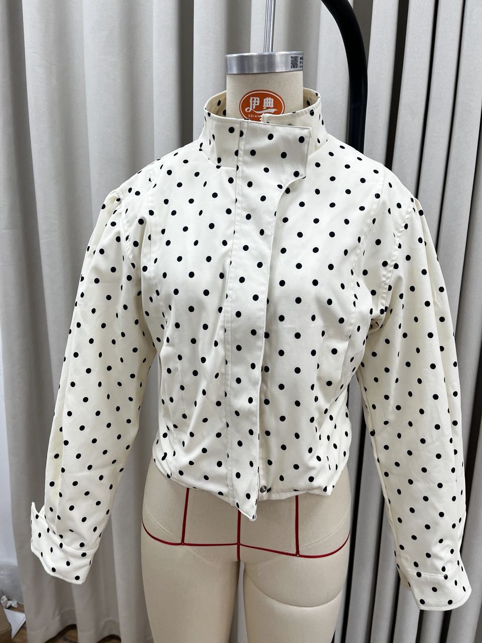 Настоящий снимок сладкого дизайна, куртка в горошек, короткая верхняя одежда, топы для женщин, 2024, трансграничный европейский и американский экспорт AliExpress, новый стиль