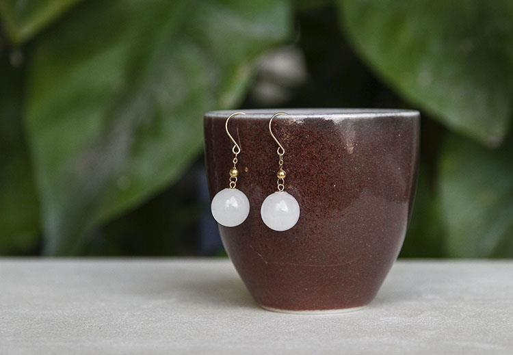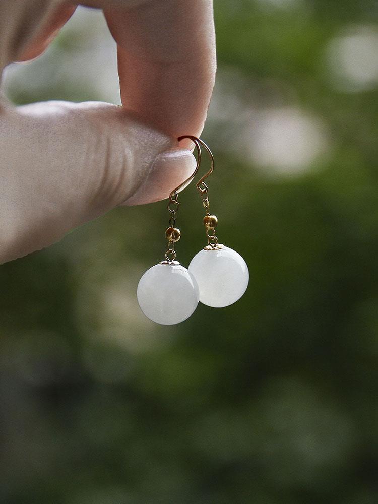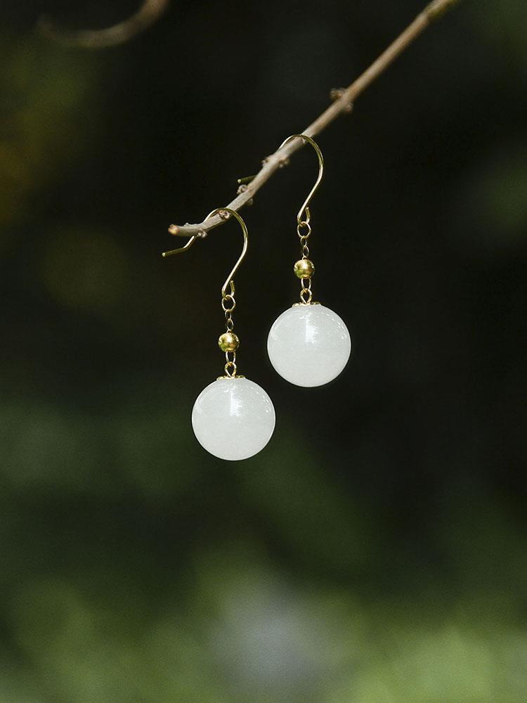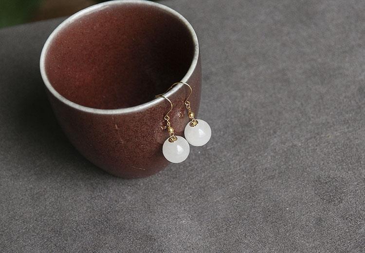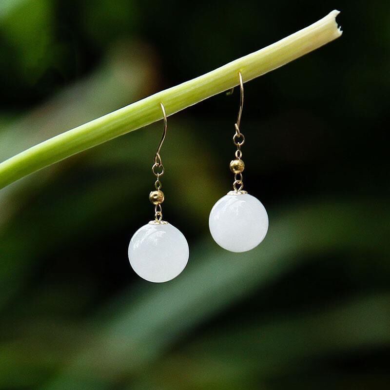 Серьги из нефрита Hetian, серьги из нефрита 925 пробы, позолоченные серьги из нефрита, круглые бусины, нефрит, элитный простой популярный горячий стиль