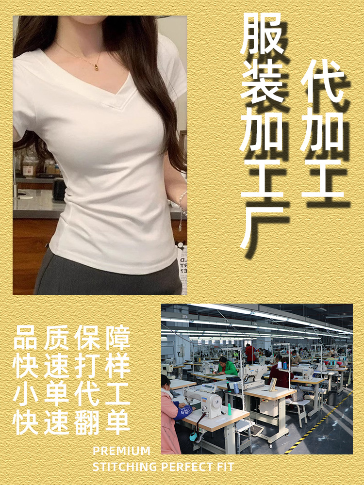 Фабрика по обработке одежды: белая футболка с V-образным вырезом, коротким рукавом и завышенной талией, нижний слой, малая партия, женская одежда на заказ.