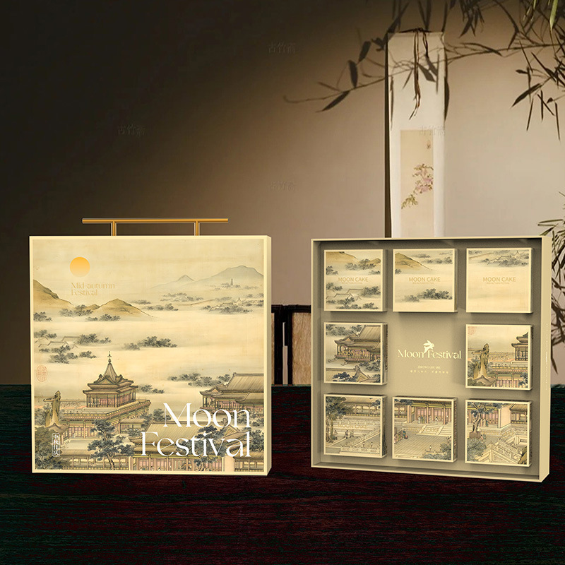 Подарочная коробка премиум-класса для фестиваля середины осени 2025 года, пустая, 4 или 8 штук, портативная, с крышкой «небо и земля», для упаковки лунных пряников
