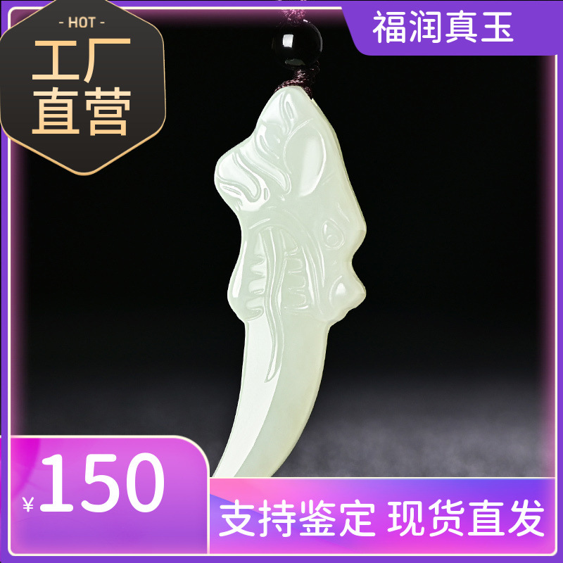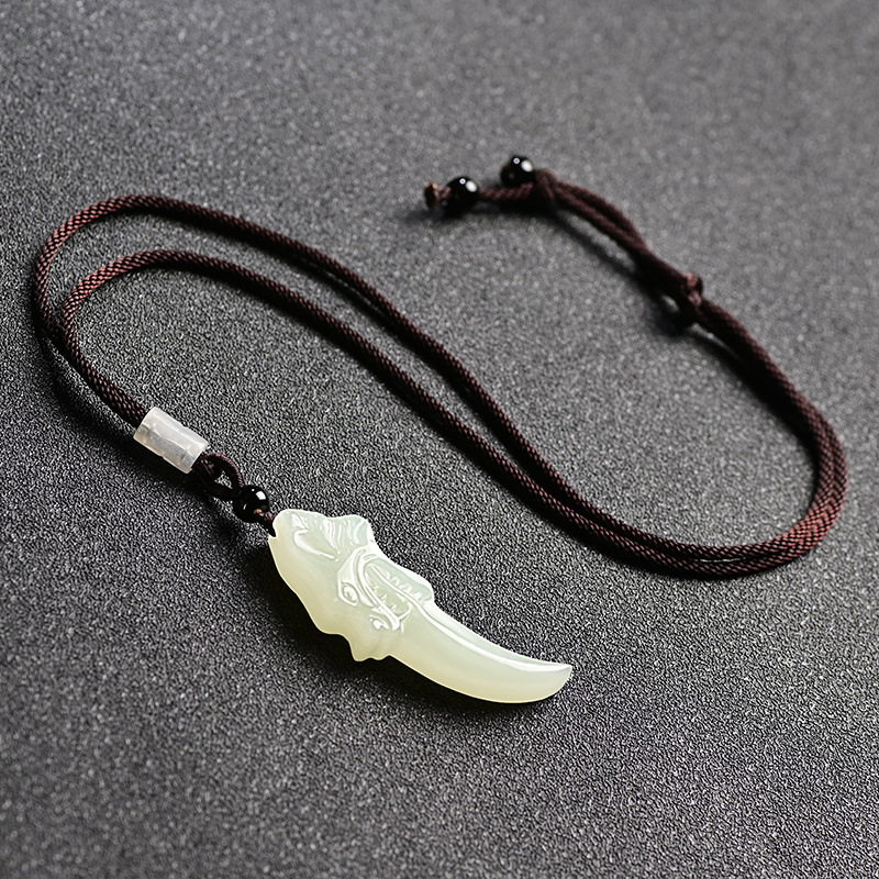 Подвеска из белого нефрита Hetian с волчьим зубом для мужчин и женщин, подвеска из натурального нефрита, ожерелье