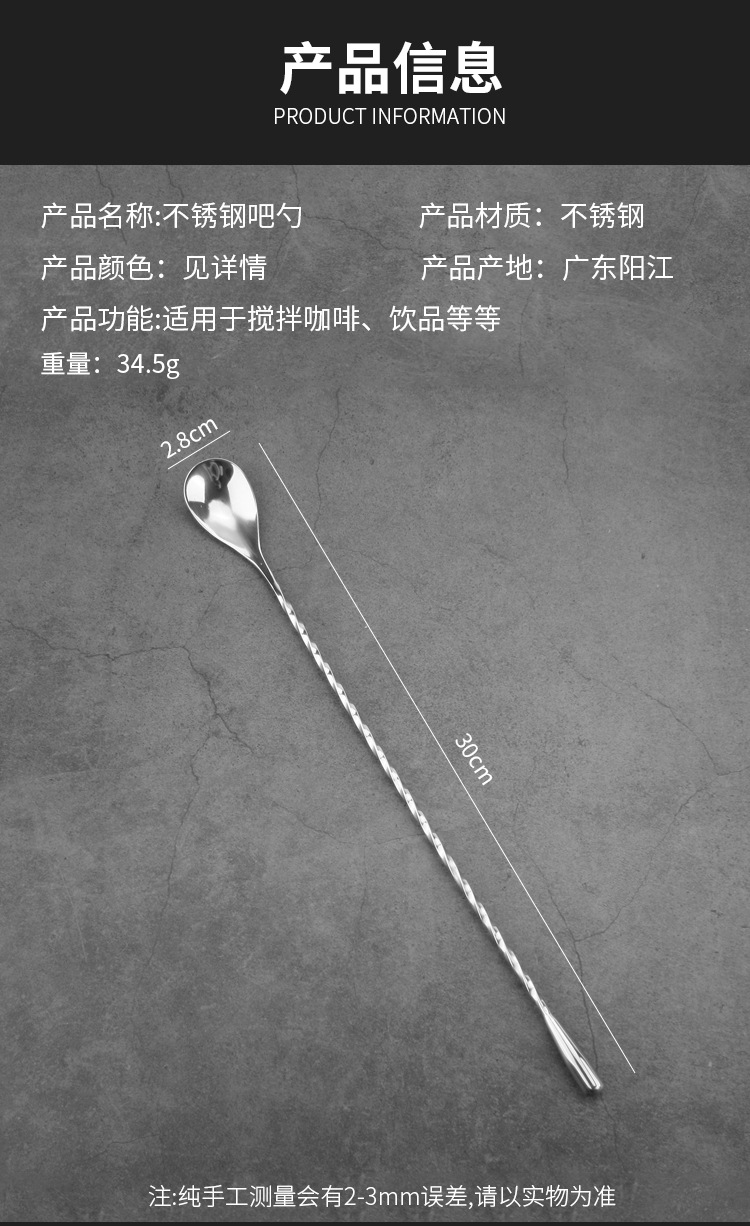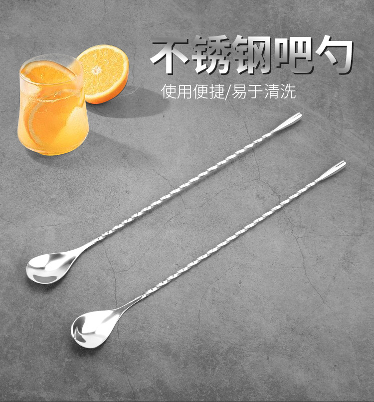 Ложка для бара из нержавеющей стали 304, ложка для бара с мелкой резьбой, ложка для перемешивания коктейлей, каплевидная ложка для бара, ложка для смешивания бара