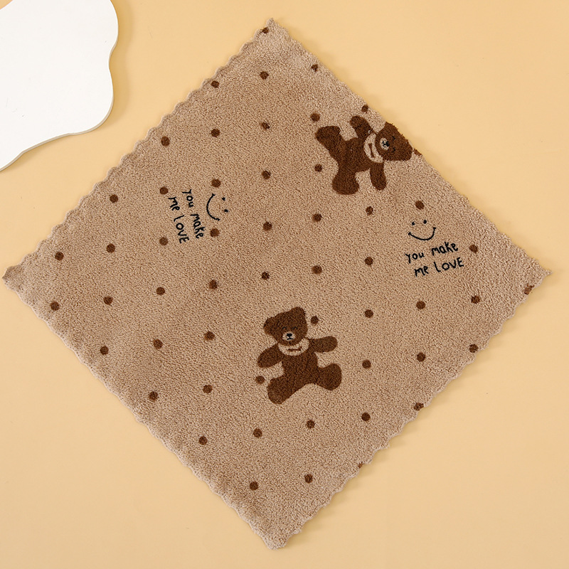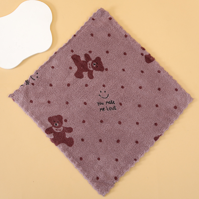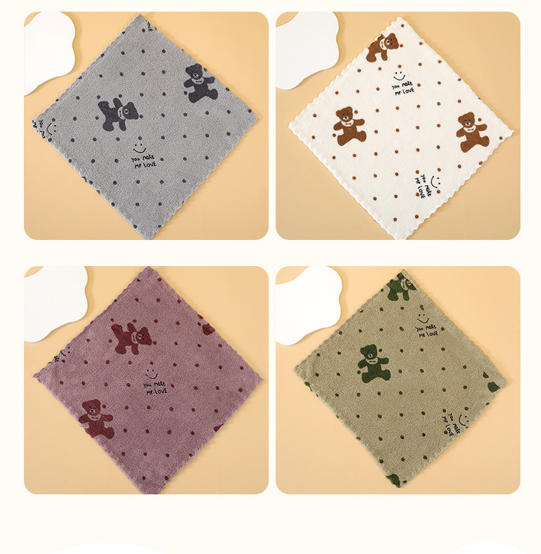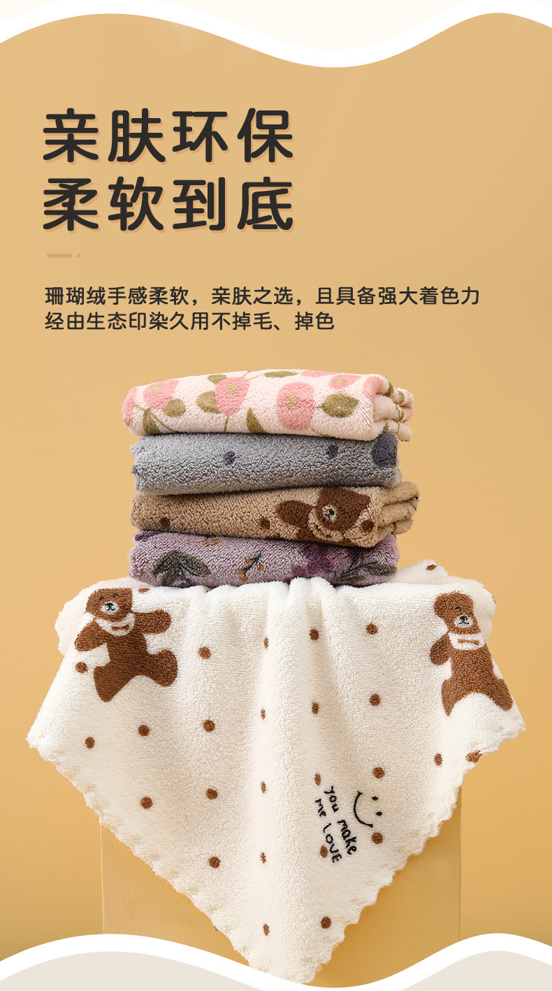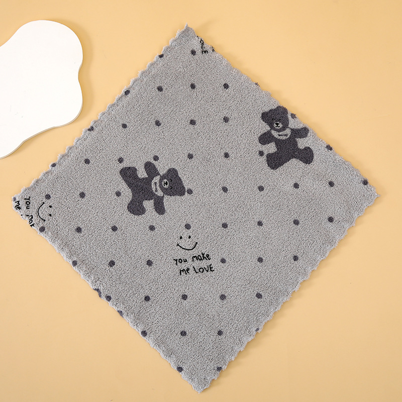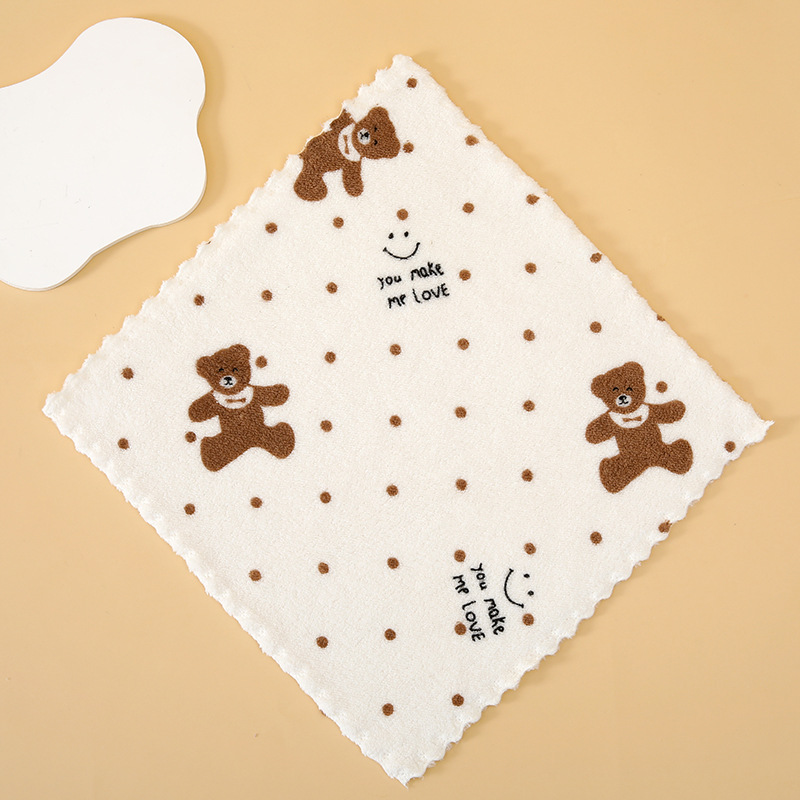 Детское квадратное полотенце из кораллового вельвета с кружевом, новое, с цветочным принтом и медвежонком, для трансграничной дропшиппинга.