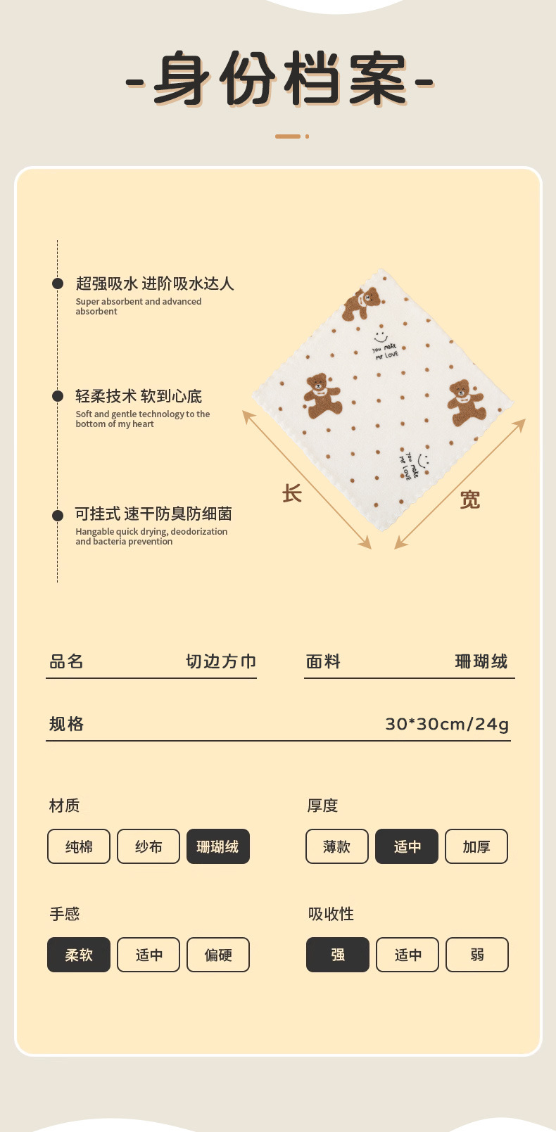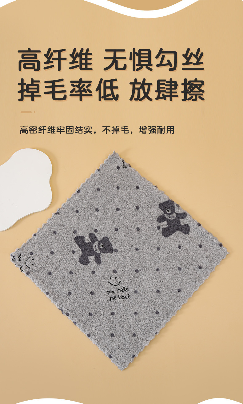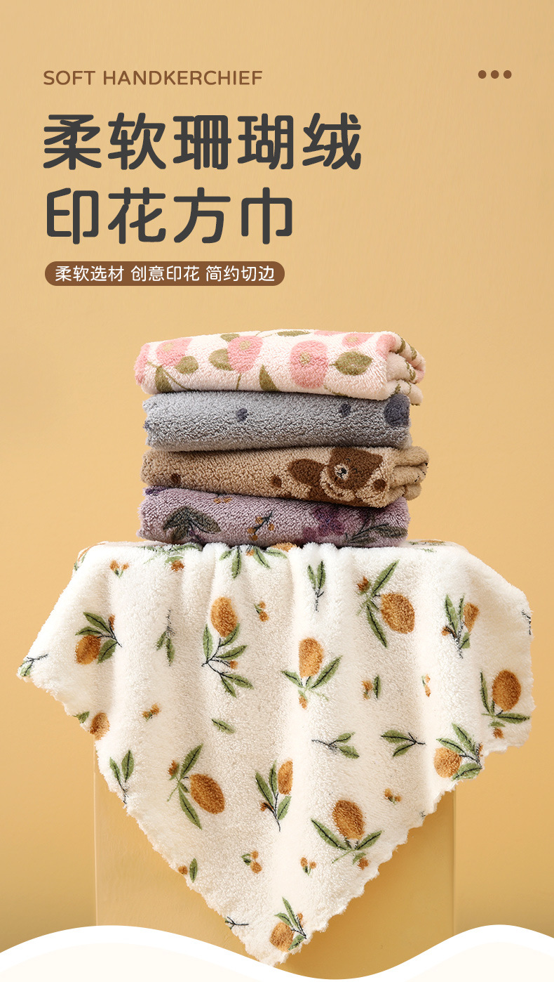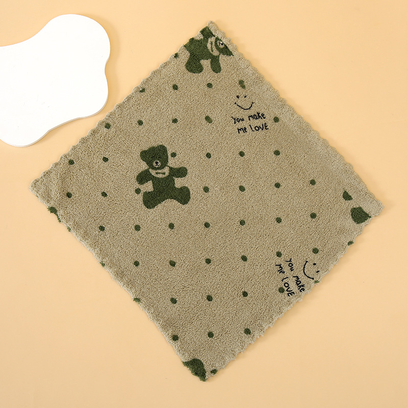 Детское квадратное полотенце из кораллового вельвета с кружевом, новое, с цветочным принтом и медвежонком, для трансграничной дропшиппинга.
