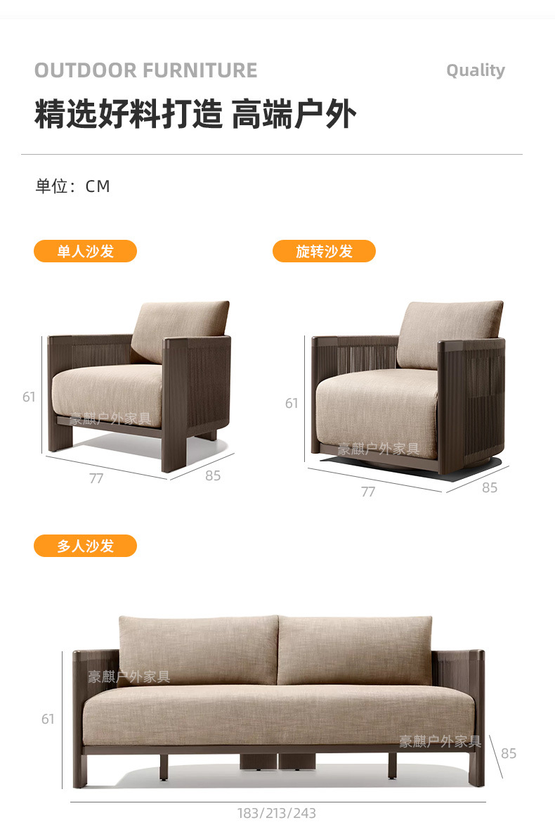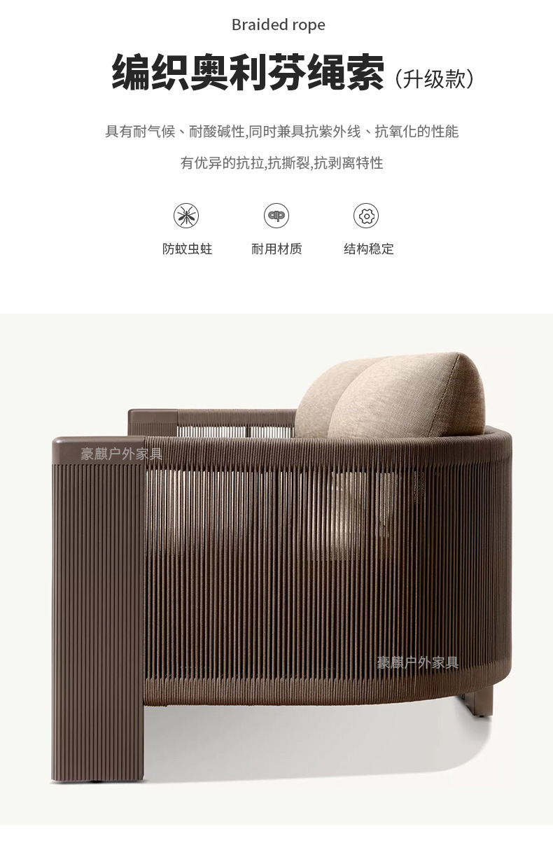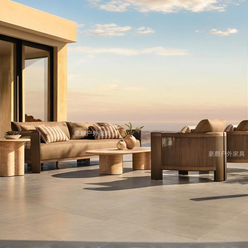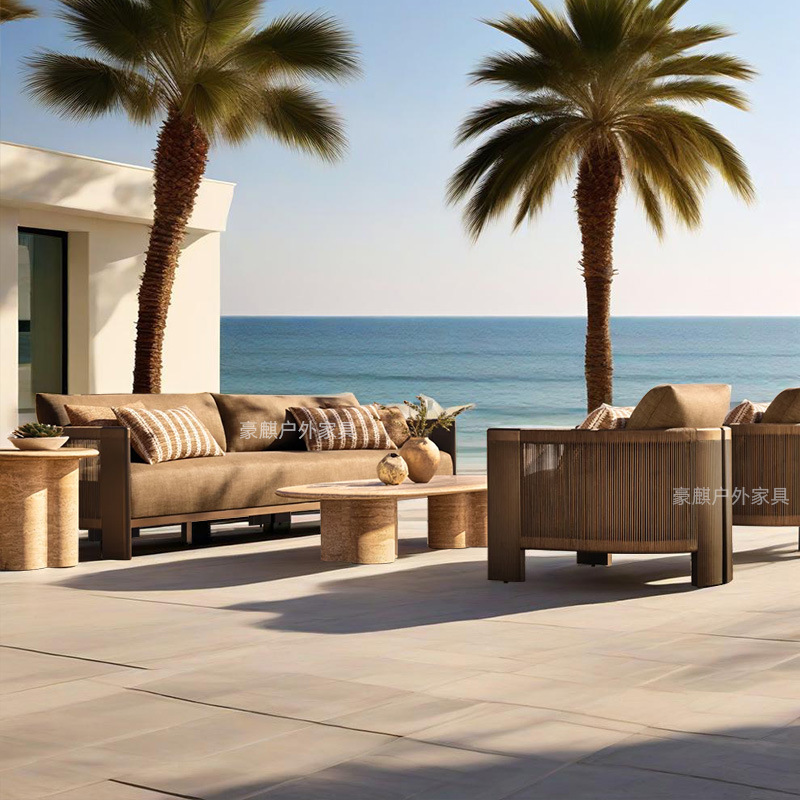 Уличный диван из алюминиевого сплава с плетеным из веревки сиденьем, дизайнерская мебель для сада и террасы, уличный диван из ротанга для отелей и гостевых домов.
