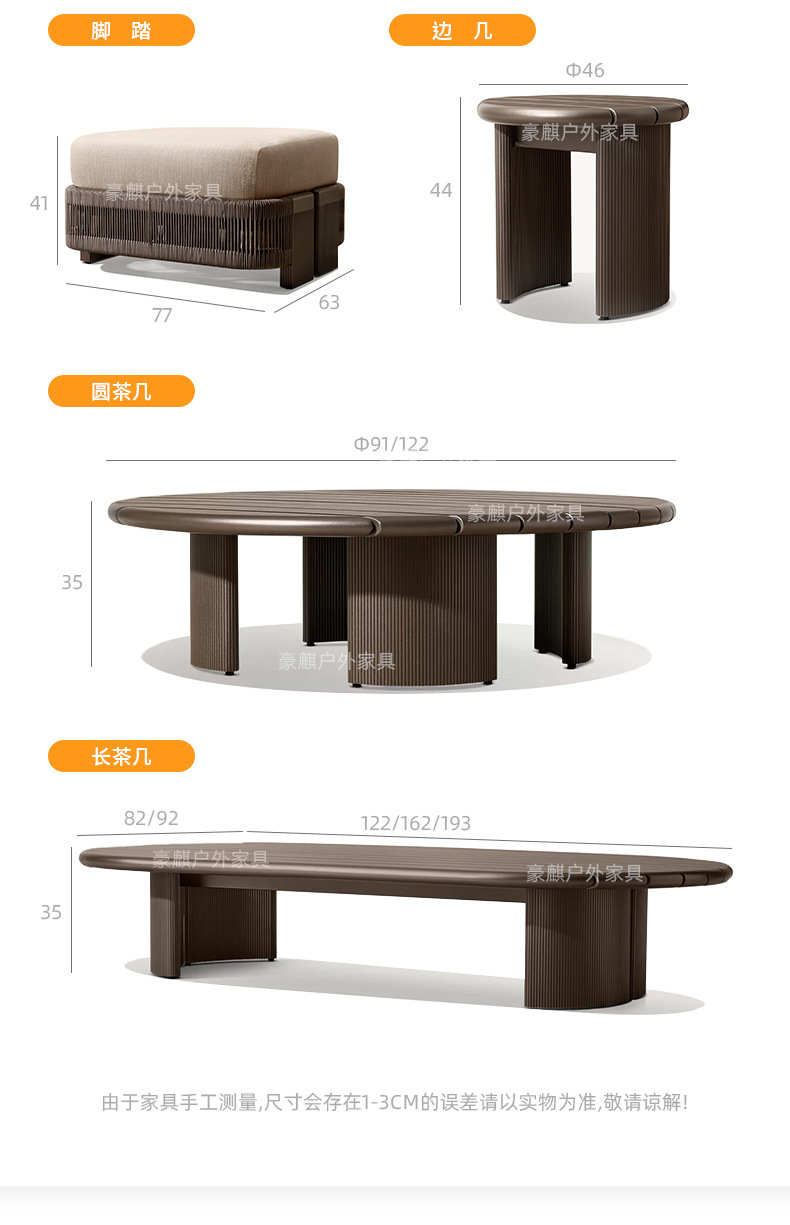 одноместный диван; вращающийся диван; диван 183 см; диван 213 см; диван 243 см; педаль; приставной столик; Круглый журнальный столик 91 см.; Круглый журнальный столик 122 см.; Журнальный столик длиной 122 см.; Журнальный столик длиной 162 см.; Журнальный столик длиной 193 см.; Односпальный*2+213 диван+162 журнальный столик