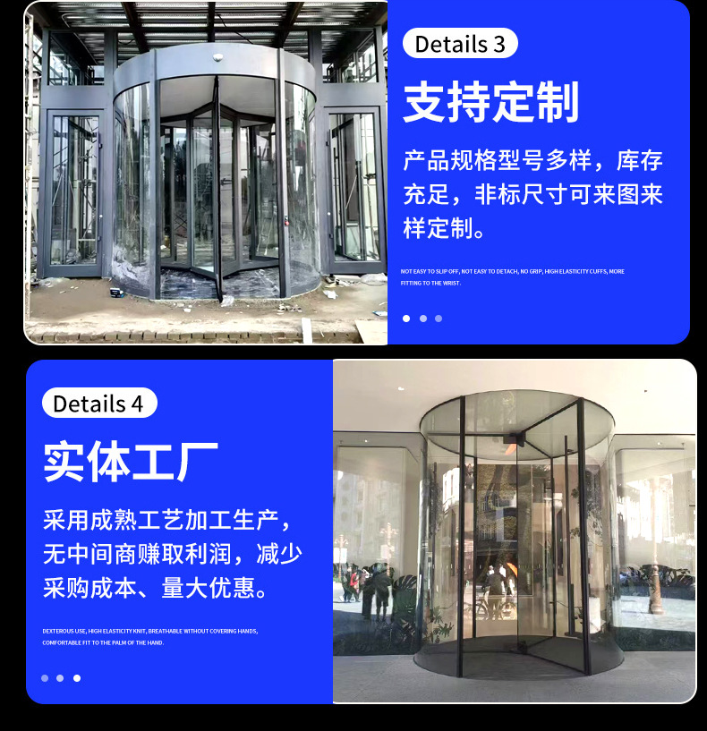 Сопротивление вращающейся двери давлению ветра в первую очередь определяется её конструкцией рамы и материалами. Вращающиеся двери из нержавеющей стали обладают превосходной устойчивостью к давлению ветра.