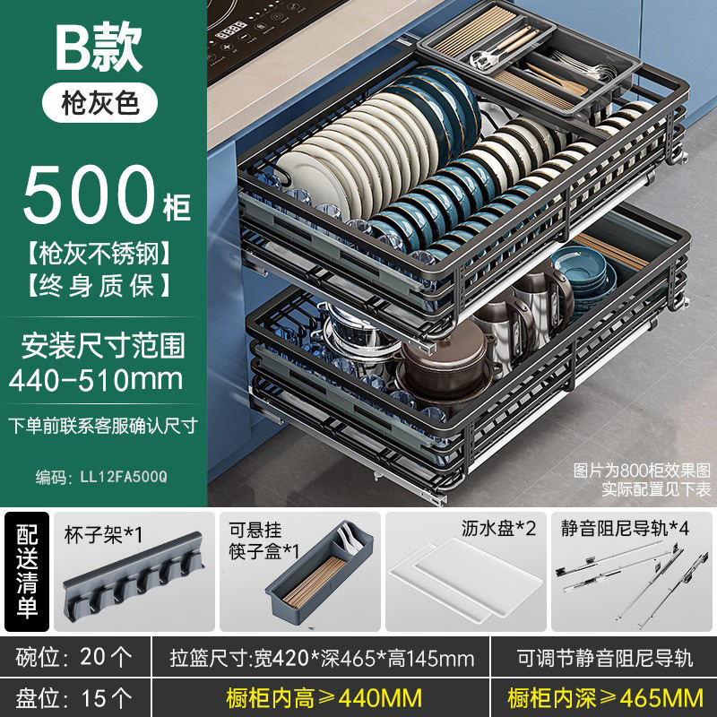 Выдвижная корзина, кухонный шкаф, двухслойная полка для посуды, выдвижная корзина из нержавеющей стали 304, выдвижная корзина для хранения приправ