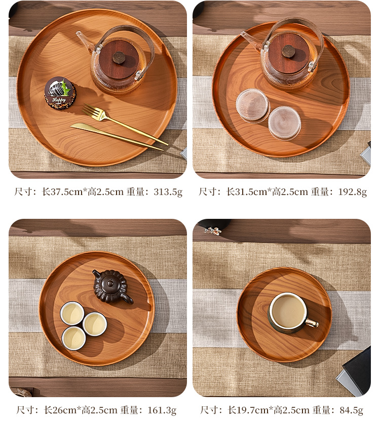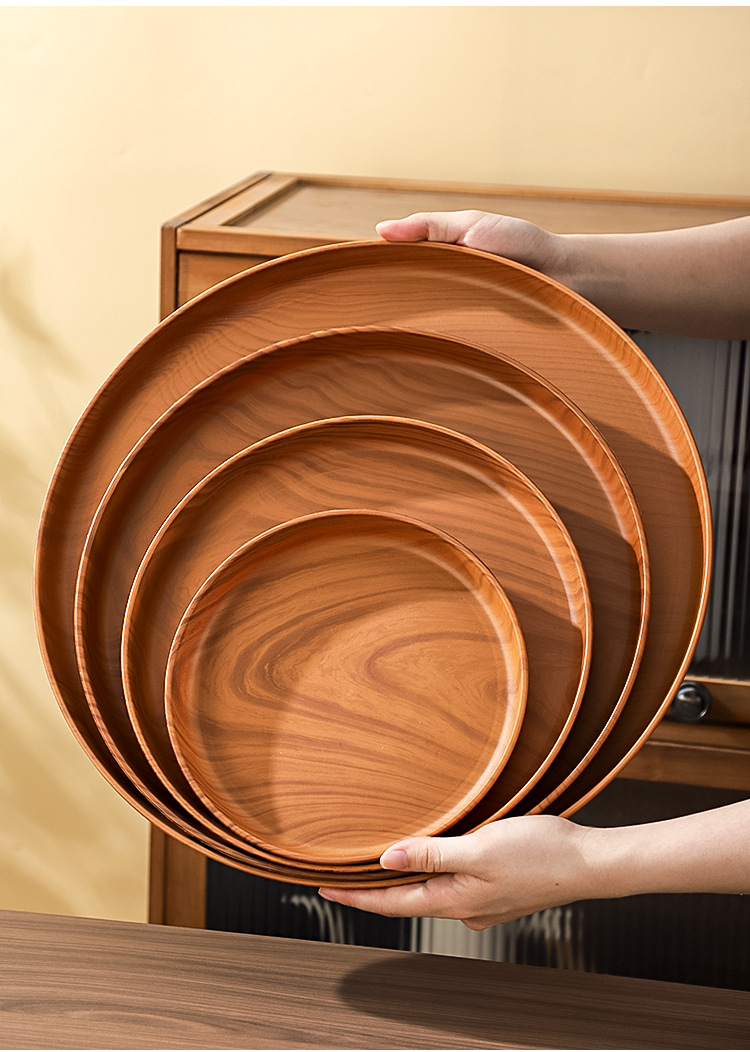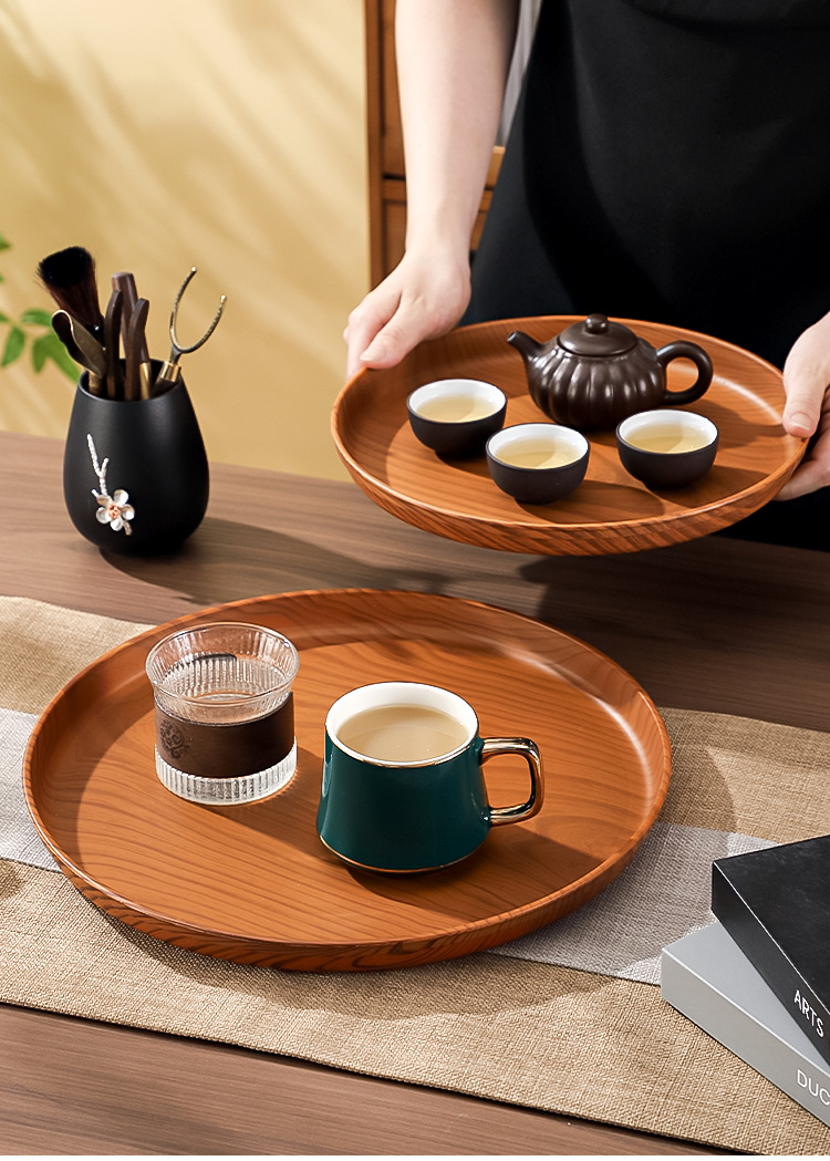 Поднос с имитацией древесины, круглый поднос, пластиковый круглый поднос для чая, бытовой поднос для хранения чашек с водой, поднос для закусок в кафе
