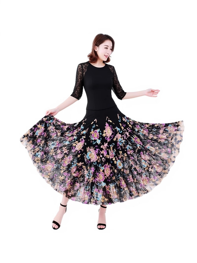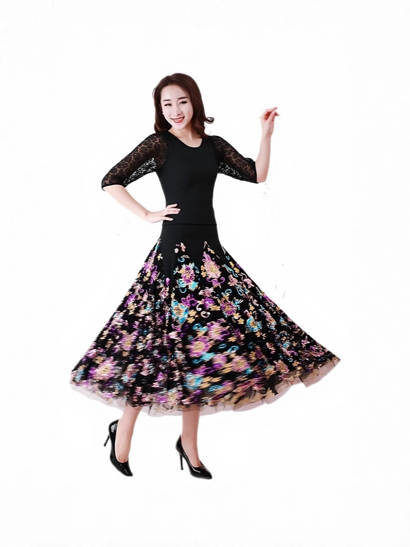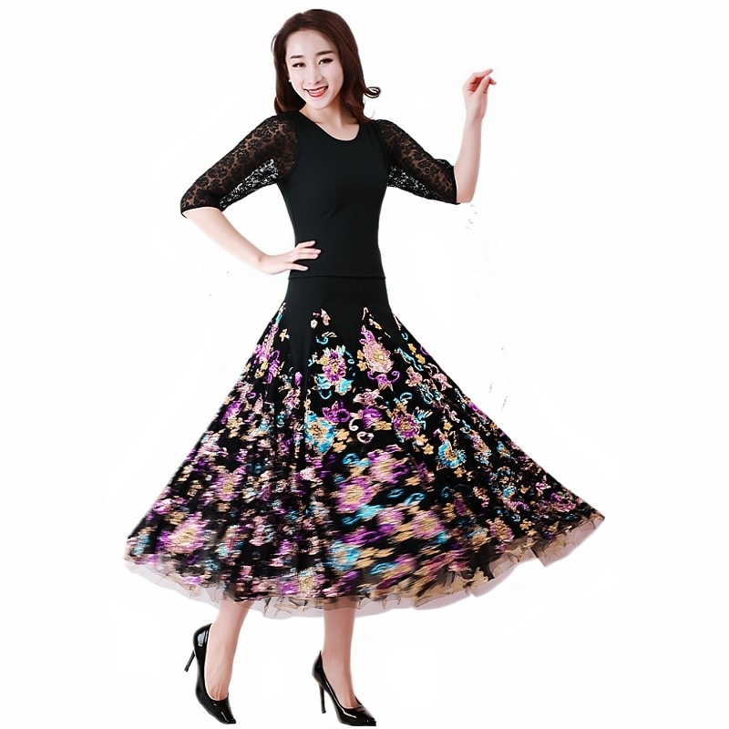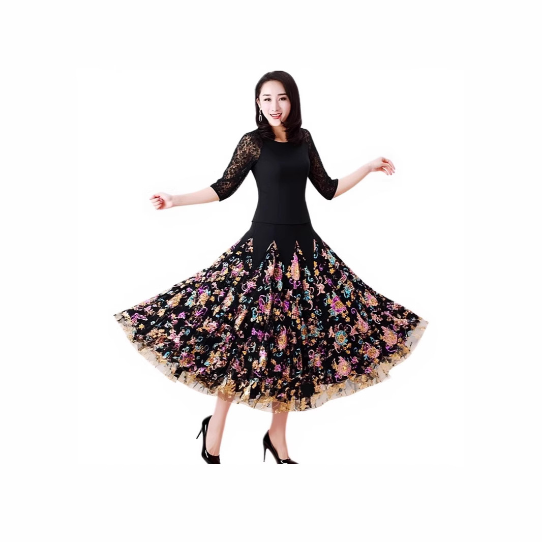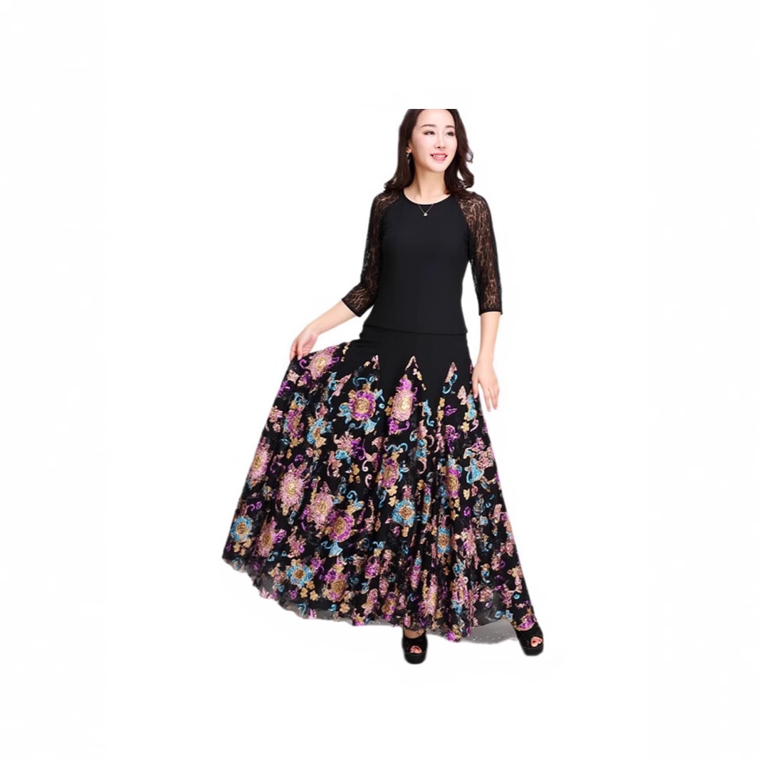 Новая юбка для современного танца, большая распашная юбка, одежда для выступлений с длинными рукавами, одежда для выступлений в бальных танцах, современный танец