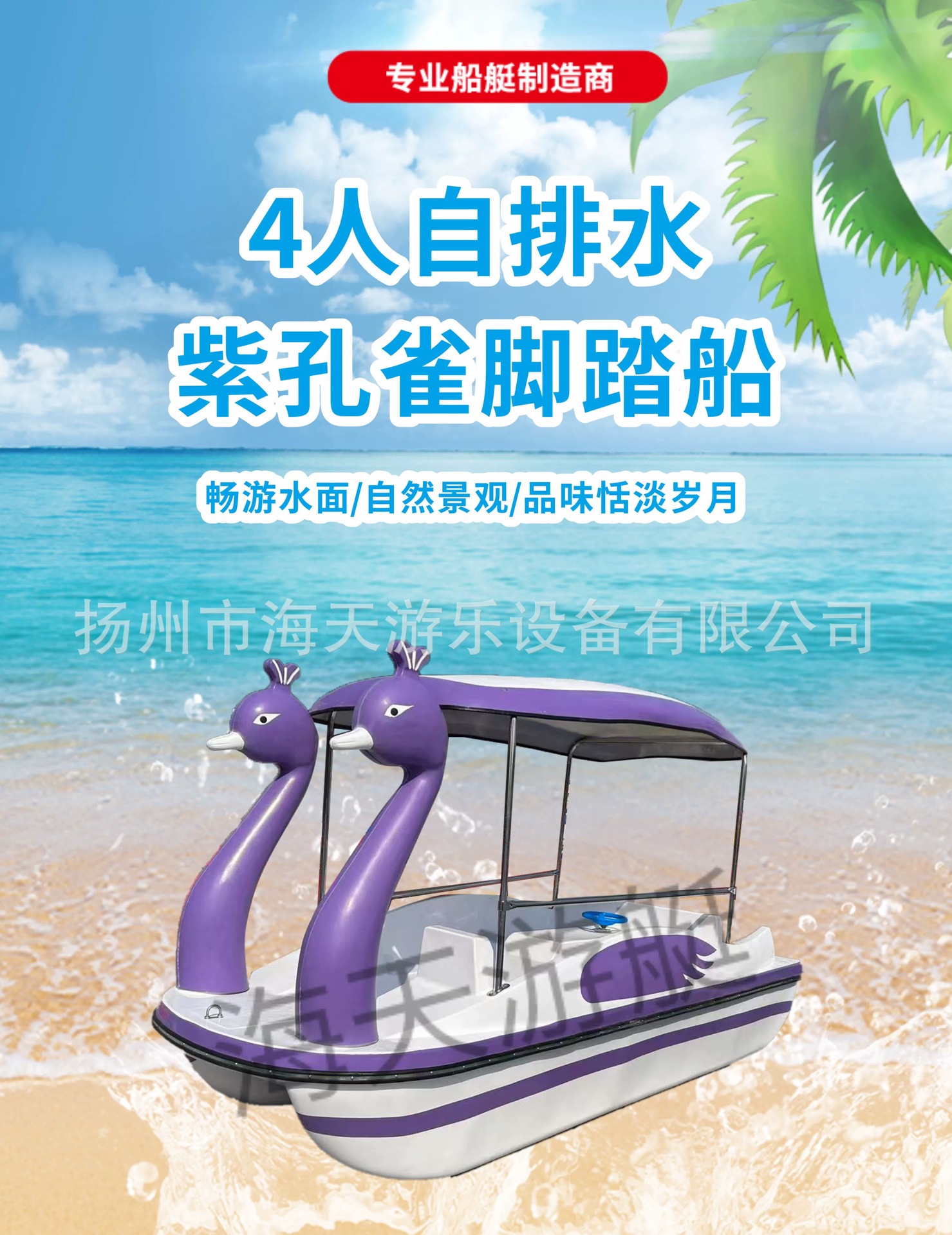 Прямые поставки с завода: новый 4-местный педальный катер для парков и живописных мест, семейный прогулочный катер для отдыха и экскурсий, фиолетовый павлин, самоходный.