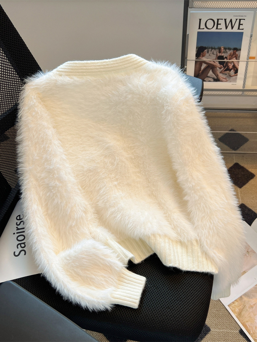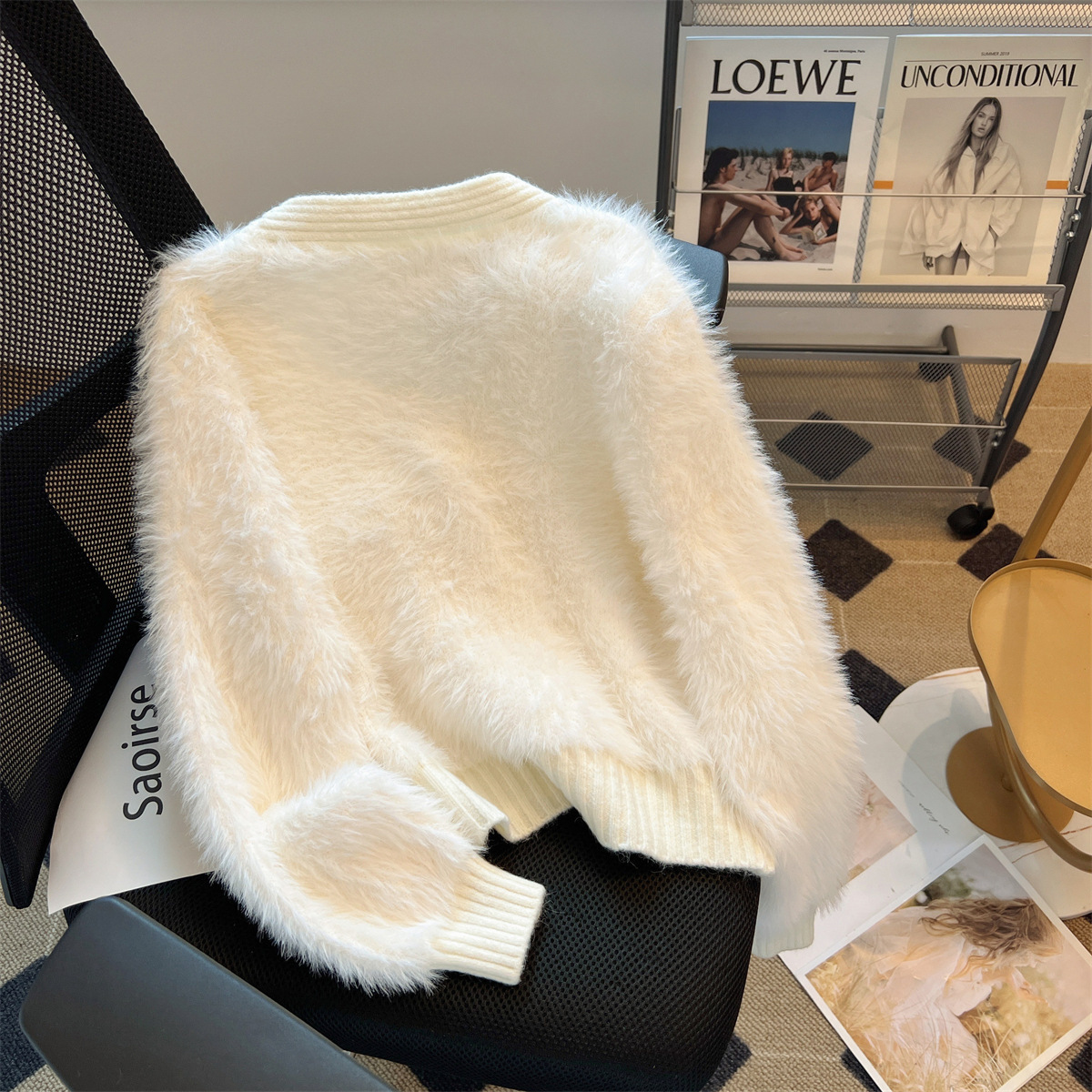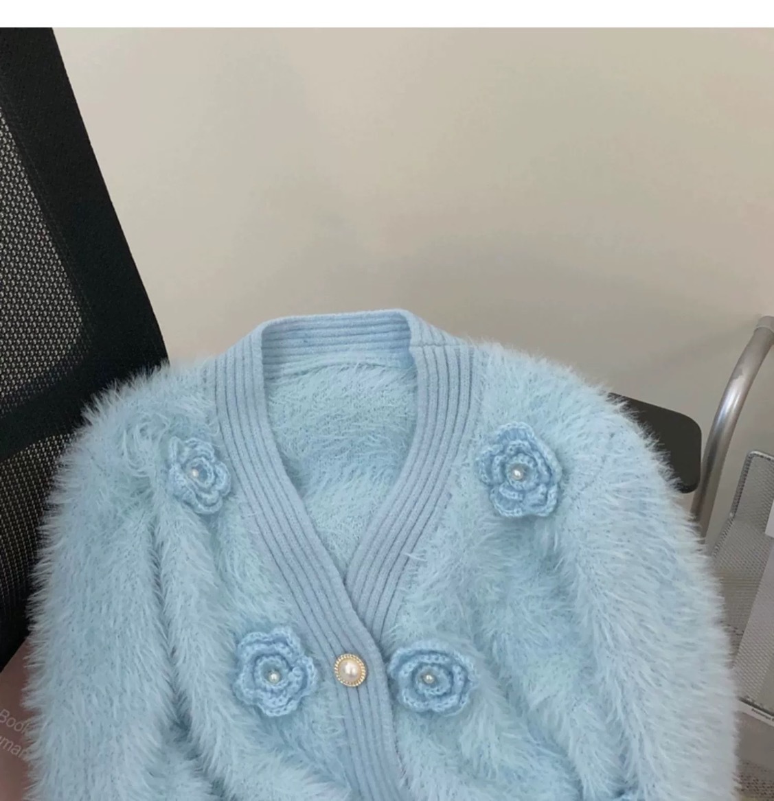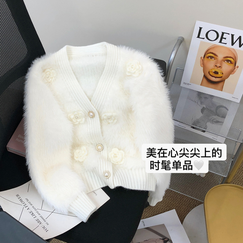 Твидовый свитер-кардиган из искусственной норки для женщин осенью и зимой, высококачественная и очень красивая вязаная куртка с цветочным принтом для маленьких людей