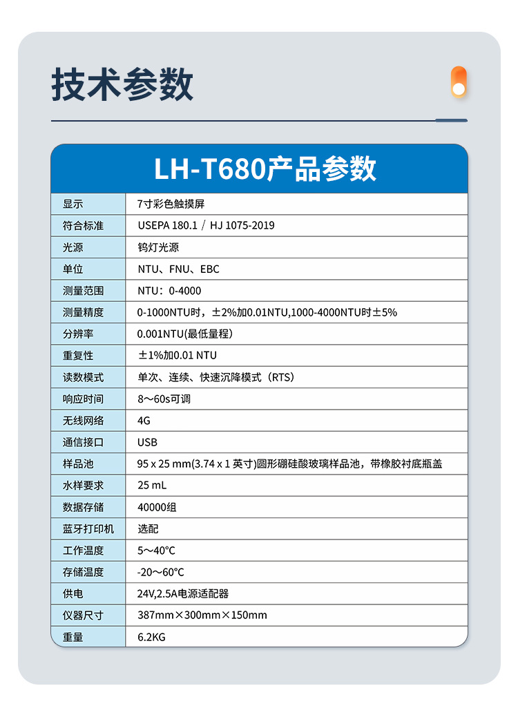 Настольный детектор мутности LH-T680; [Два параметра] Взвешенные вещества/Мутность; [Один параметр] Измеритель мутности 0-1000NTU