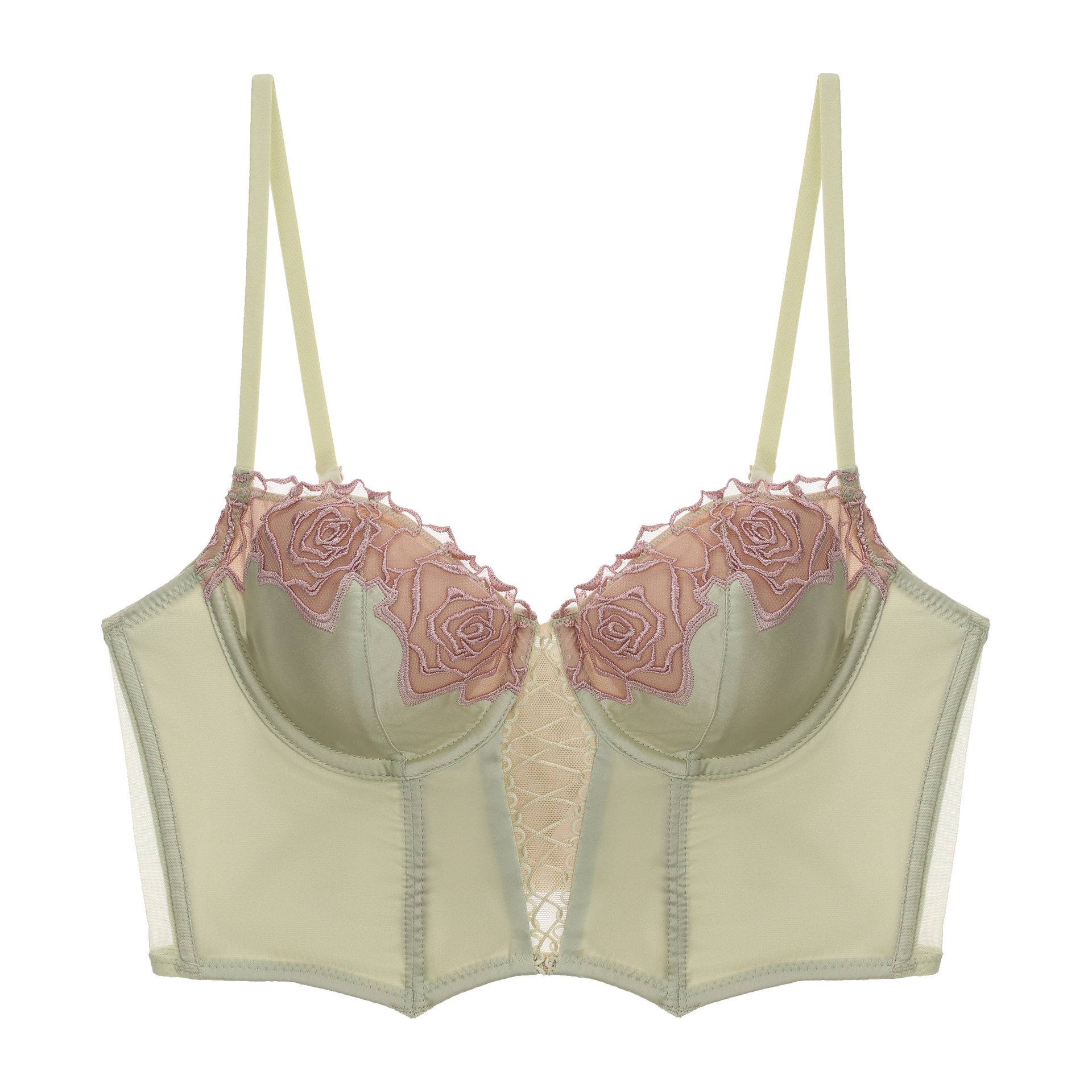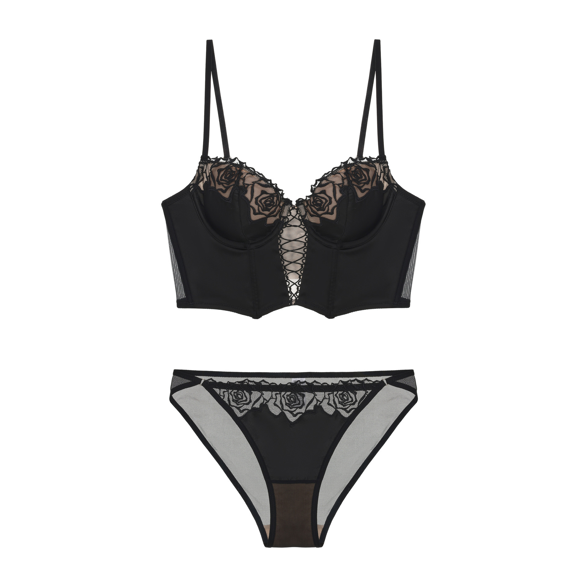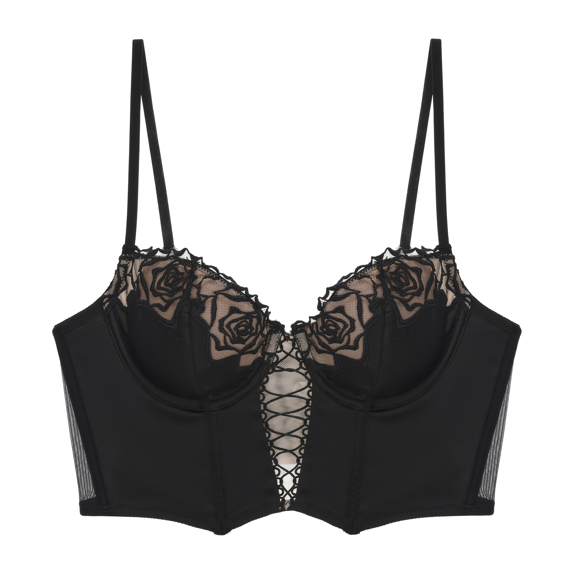 法式线条勾勒,花蕾浮雕感逼真立体,视觉聚焦上胸曲线。
