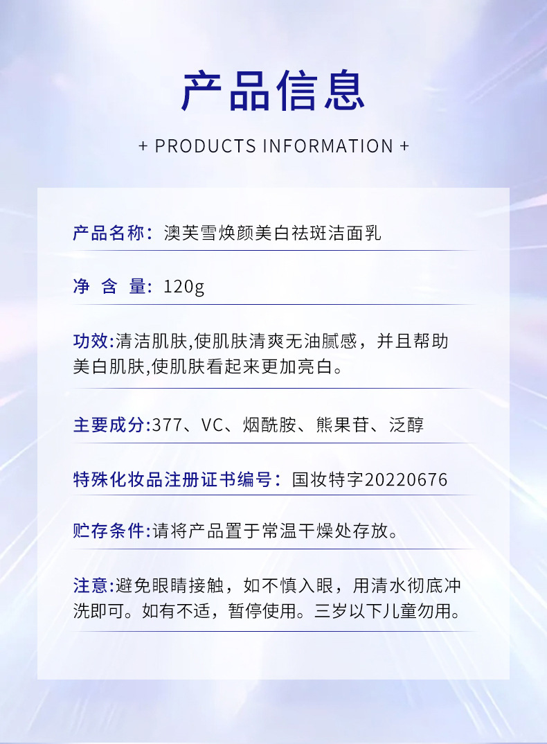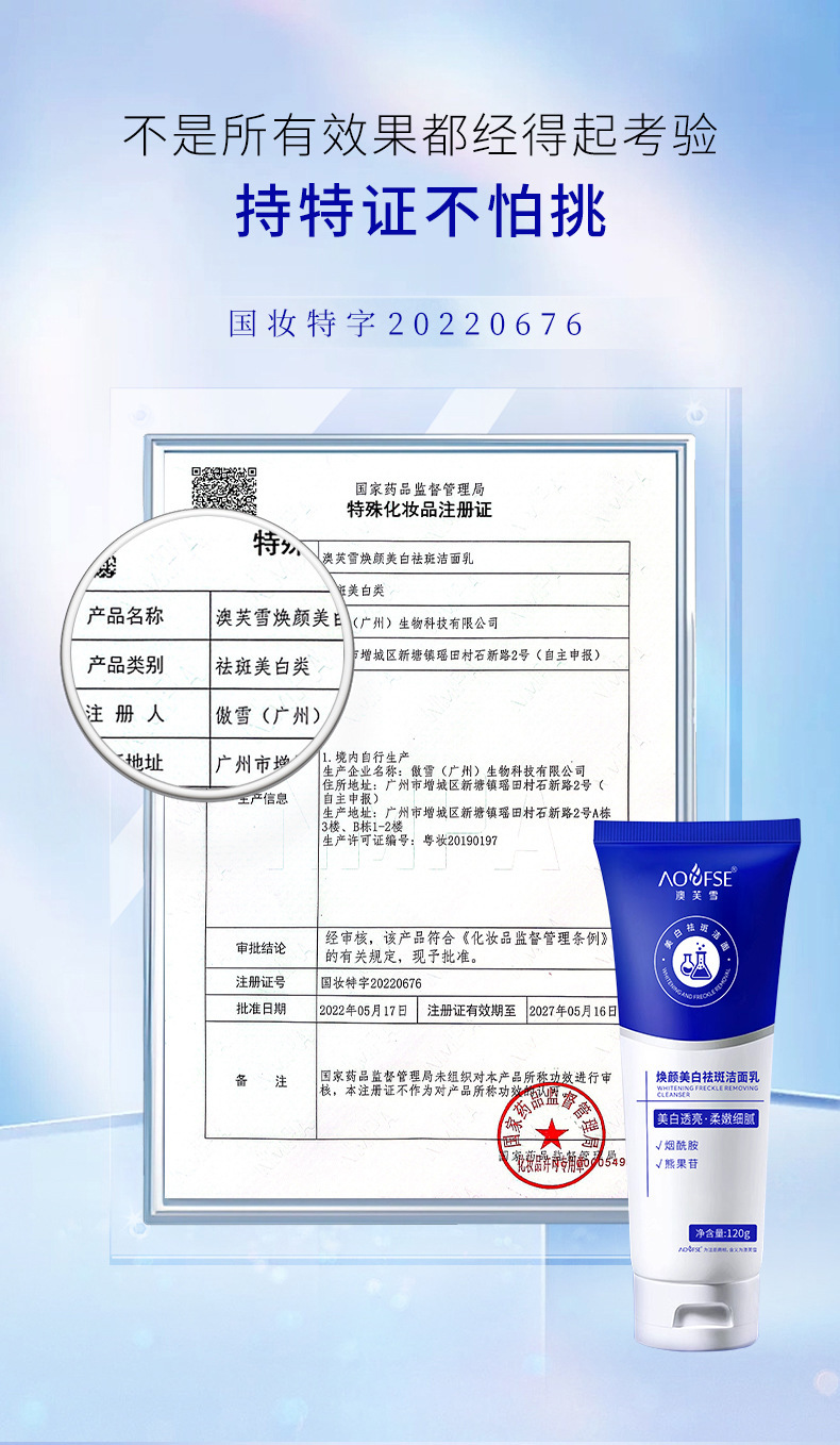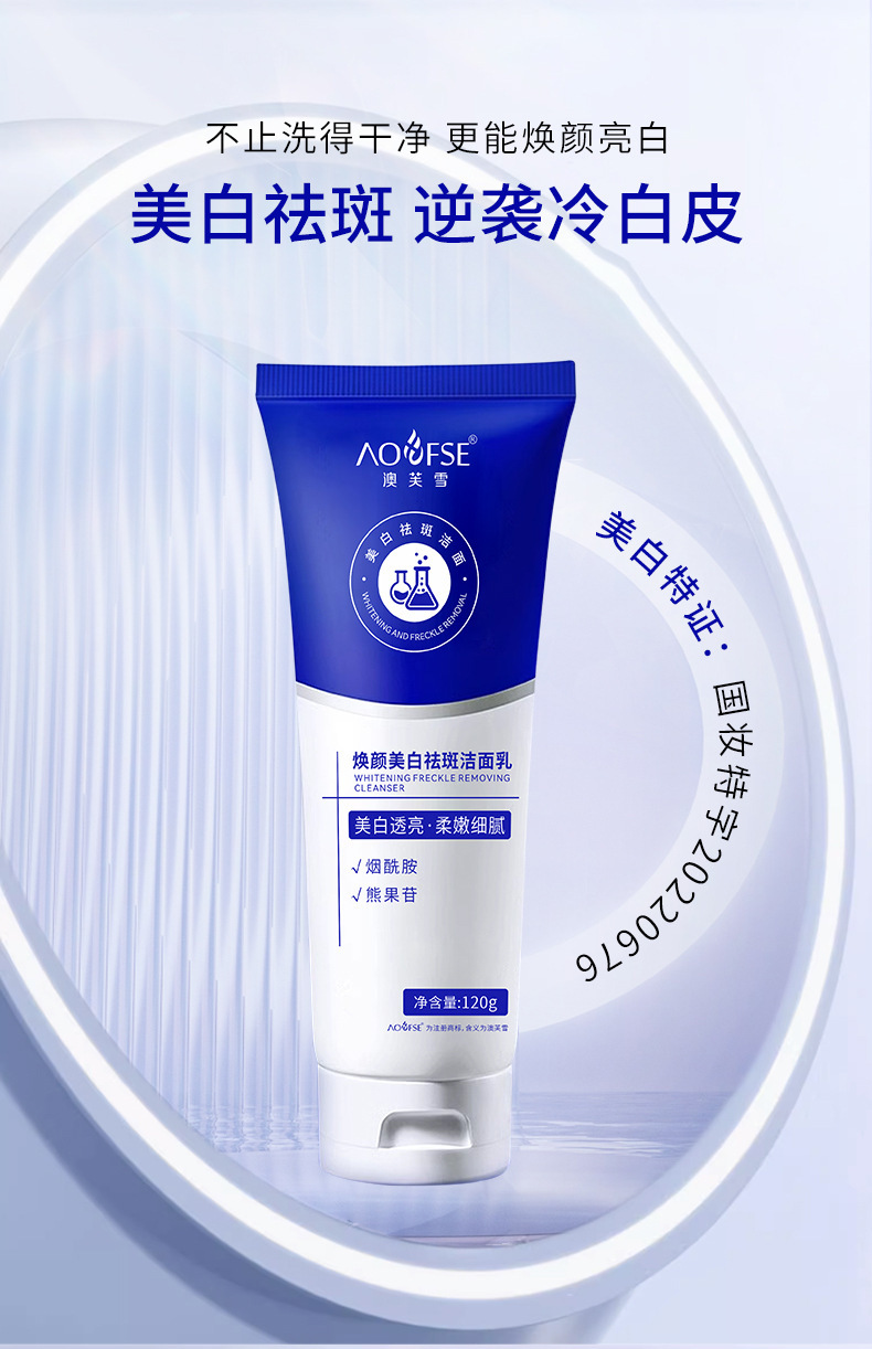 Aufuxue Омолаживающее отбеливающее и очищающее молочко против веснушек-1 (коробка 120 г); Aufuxue омолаживающее, отбеливающее и противопигментное очищающее средство (120 г в обнаженном виде)