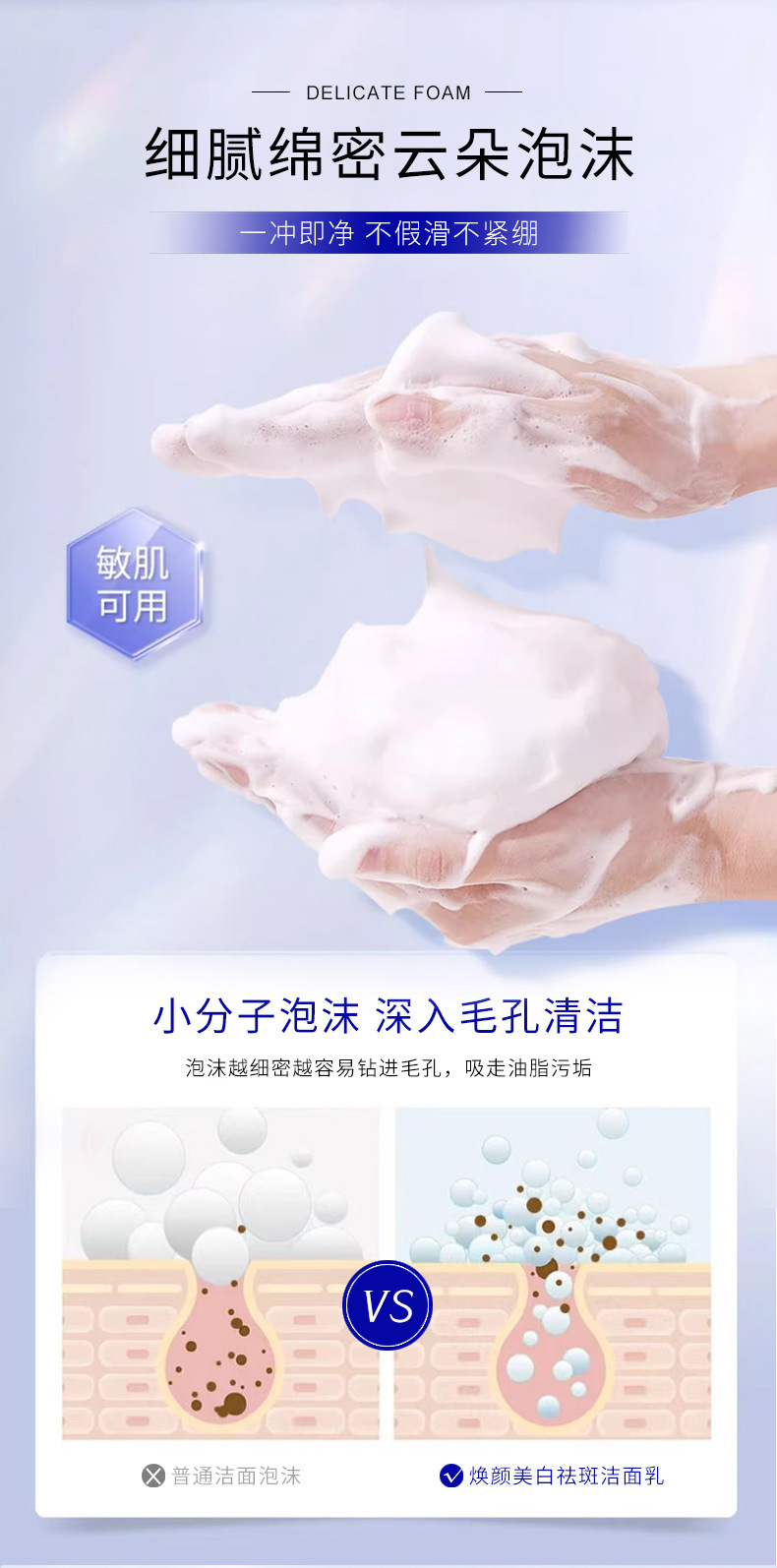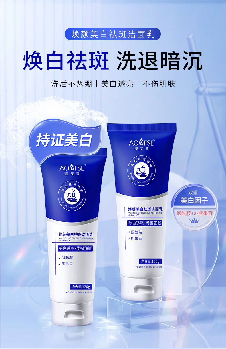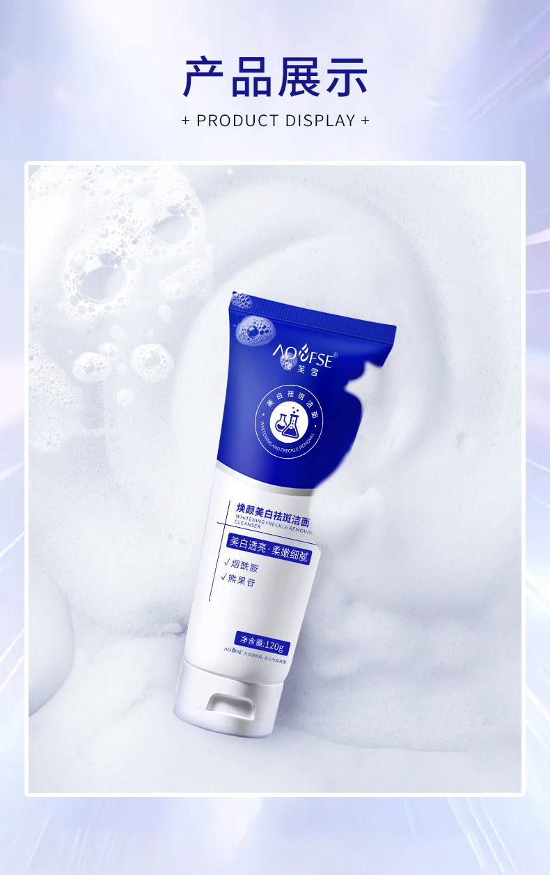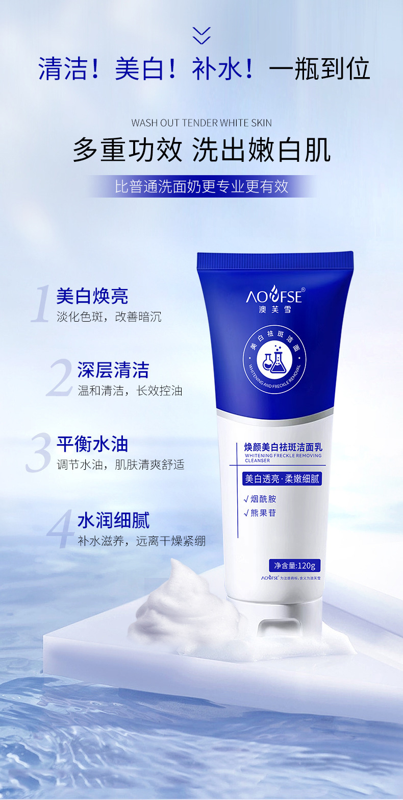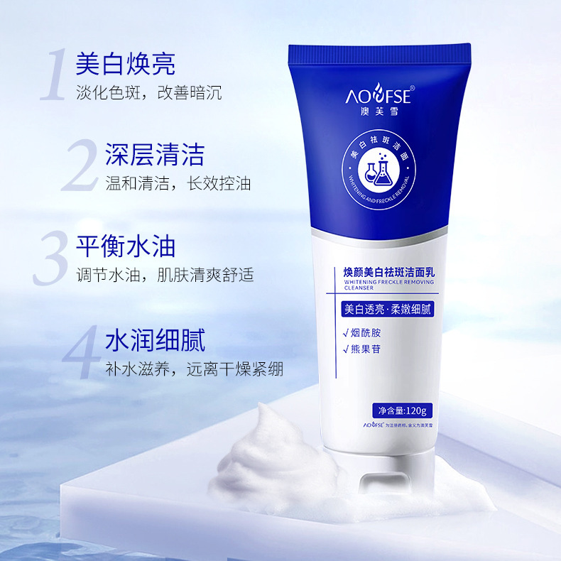 Aofuxue Очищающее средство для лица отбеливает и веснушки Очищающее средство для лица осветляет кожу, сужает поры и увлажняет