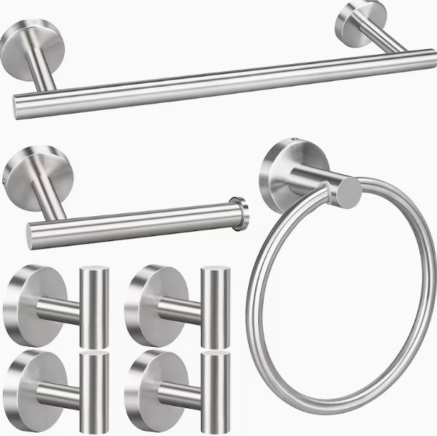 Набор для ванной из нержавеющей стали: полотенцедержатель, вешалка для полотенец, держатель для туалетной бумаги, крючки для одежды (без сверления)