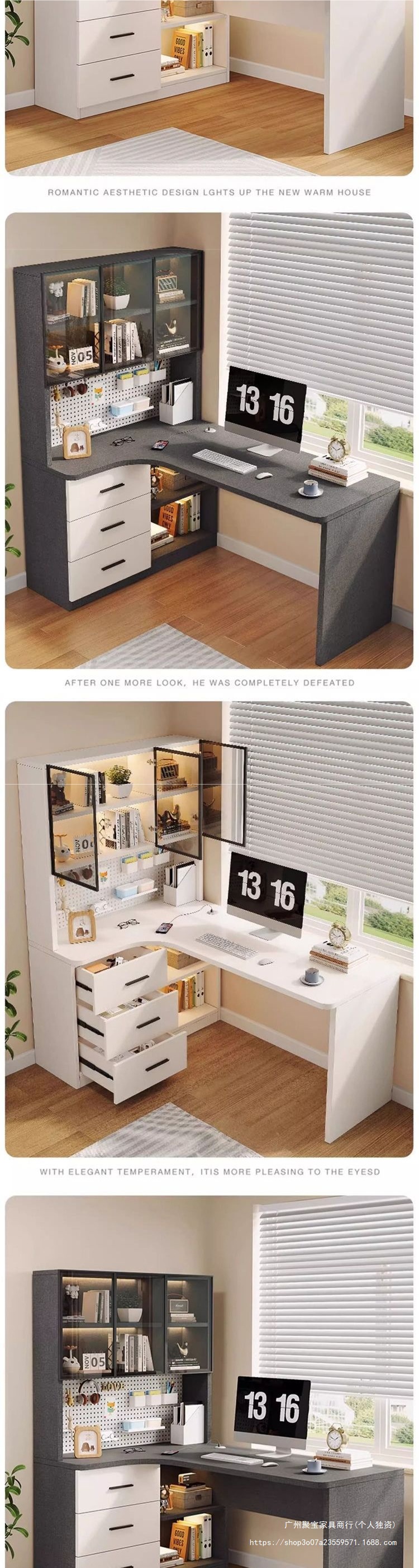 Кремово-белый угловой письменный стол + перфорированная доска своими руками - правый шкаф; Кремово-белый угловой письменный стол + перфорированная доска своими руками — левый шкаф; Серый угловой письменный стол + перфорированная доска своими руками — правый шкаф; Серый угловой стол + перфорированная доска своими руками — левый шкаф; Угловой письменный стол из ореха + перфорированная доска своими руками - правый шкаф; Угловой письменный стол из орехового дерева + перфорированная доска своими руками — левый шкаф