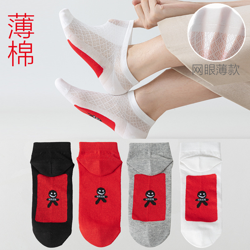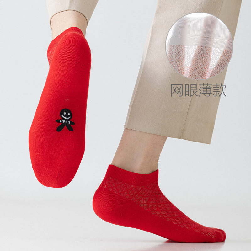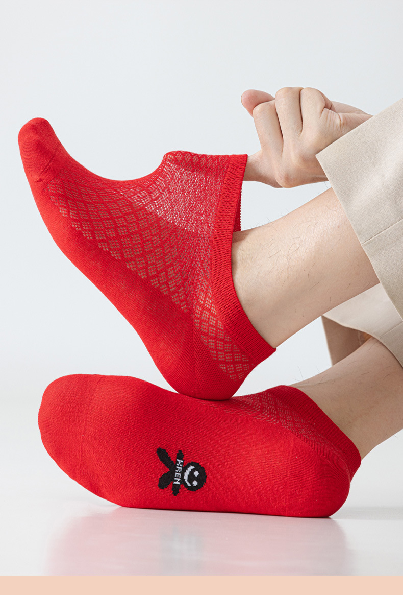 Ультратонкие красные носки, летние сетчатые мужские и женские красные короткие носки с изображением зодиака, носки-лодочки, пара, счастливые семизвездочные носки