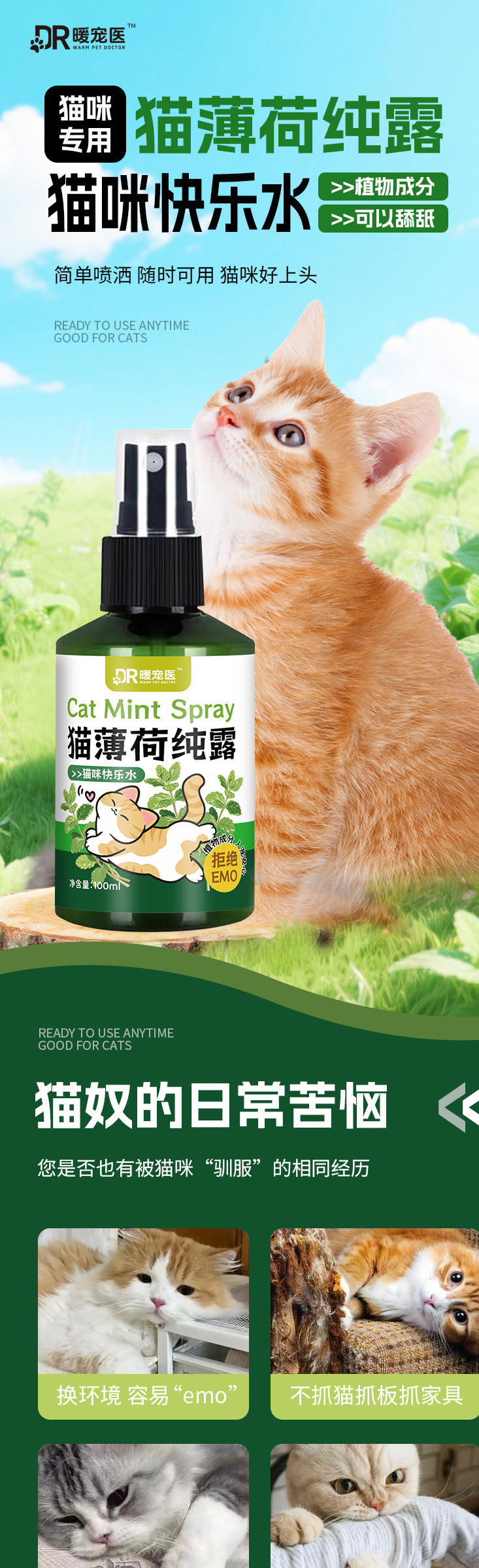 Теплый медицинский спрей с кошачьей мятой для домашних животных, жидкий индуктор, 100 мл, эмоционально успокаивающая вода для домашних животных, оптовая продажа