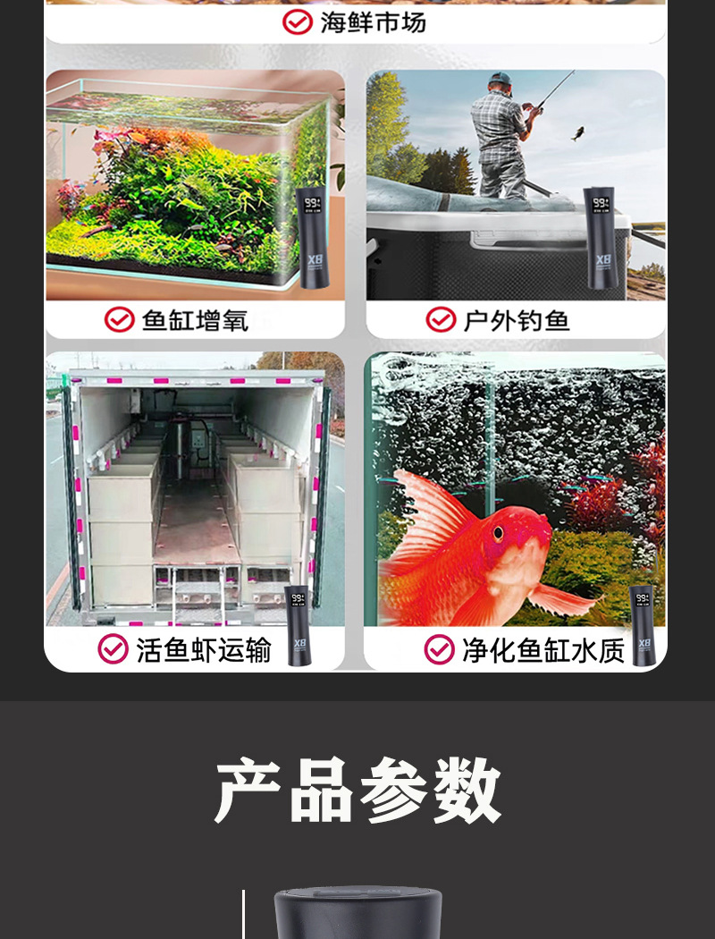 Кислородный насос для рыбалки на открытом воздухе для домашнего рыбоводства, ночной рыбалки, дикой рыбалки, ларей с водными продуктами, портативной зарядки и подключения, бесшумный и стабильный.