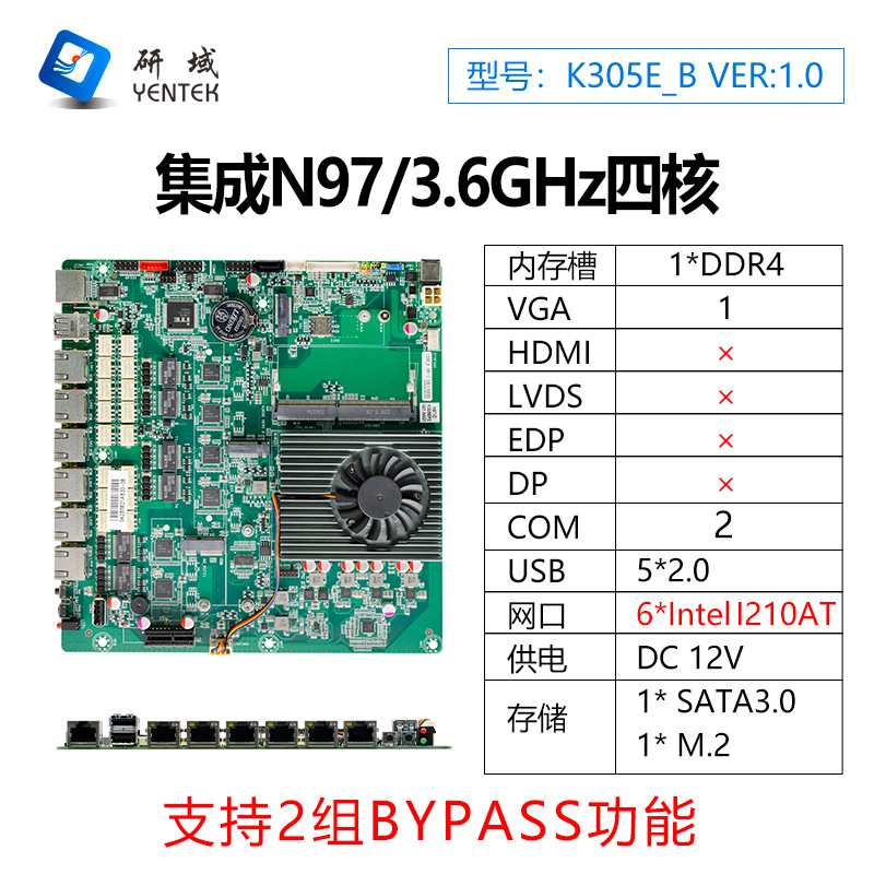 Yanyu K305E материнская плата промышленного управления с мягким маршрутизатором, 6 сетевых портов, N97/i3-N305, корпоративный маршрутизатор, 5G BYPASS