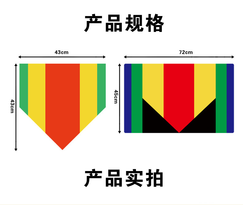 Квадрат [72*43*0,3 см]; Специальная форма: желтый, зеленый и красный плинтусный коврик [43*43*0,3 см]; Утолщённый специальный коврик для баскетбольной щитовой панели в жёлтых, зелёных и красных цветах [43*43*0,5 см]