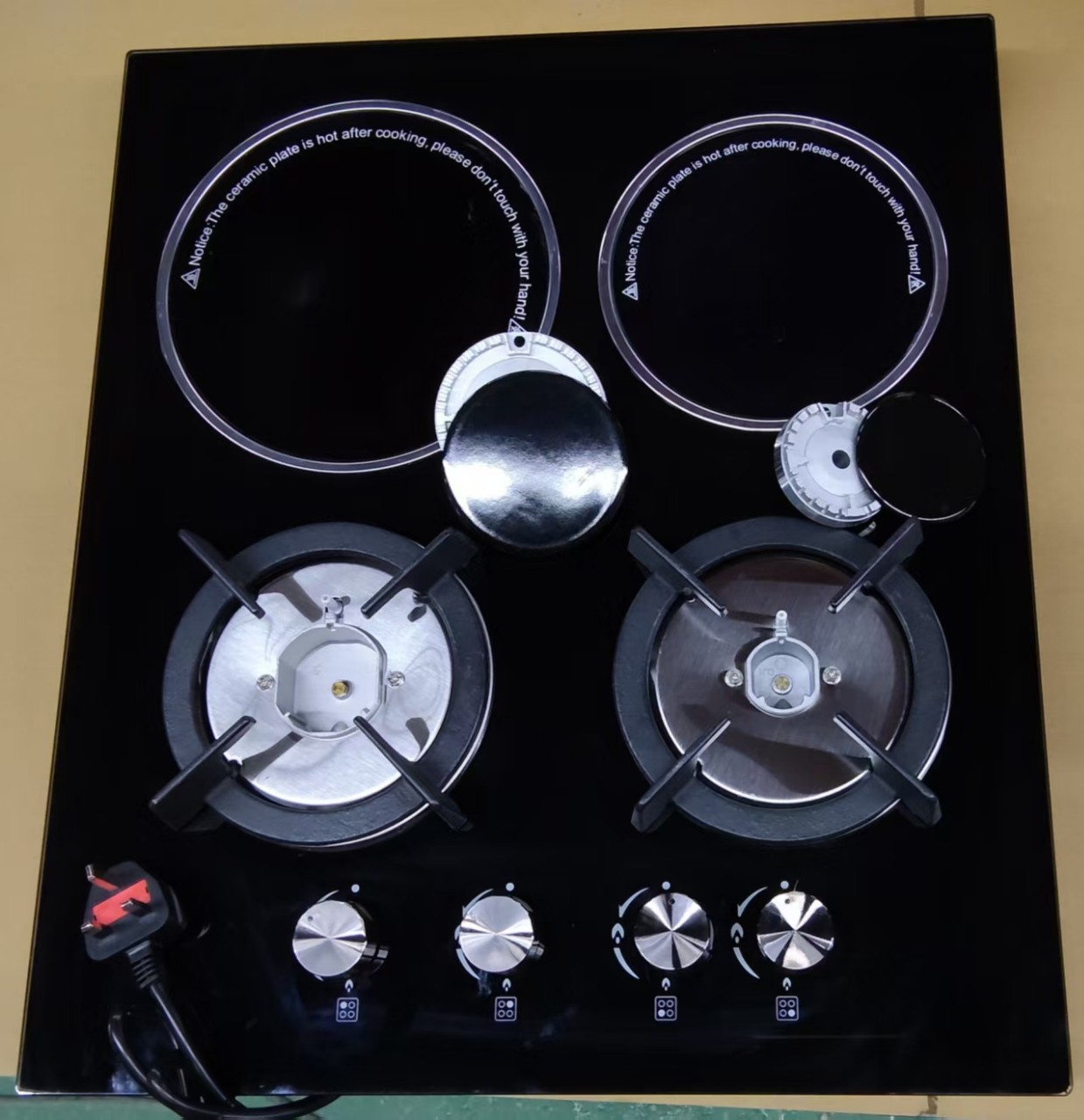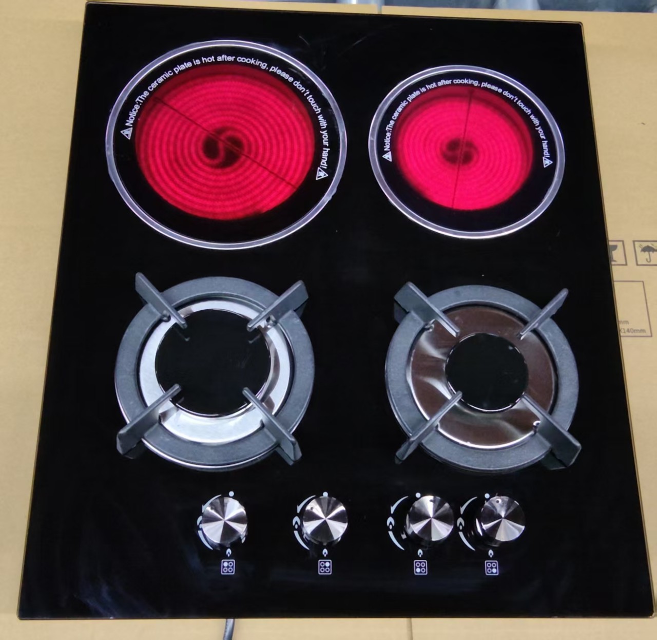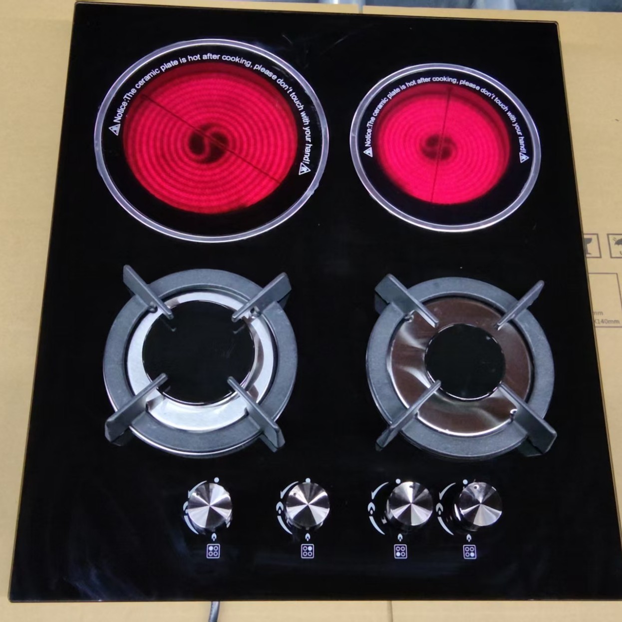 Электрическая керамическая плита с двумя газовыми и двумя электрическими конфорками, четырехконфорочная варочная панель, встраиваемая плита двойного назначения (газ и электричество) для домашнего использования.
