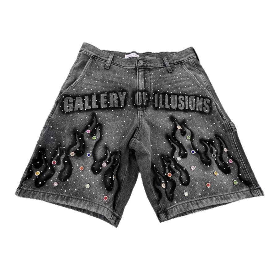 Мужские шорты в стиле Y2K, летние, модные, с ручной росписью, принтом «горячие бриллианты», свободные джинсовые шорты для экспорта за границу