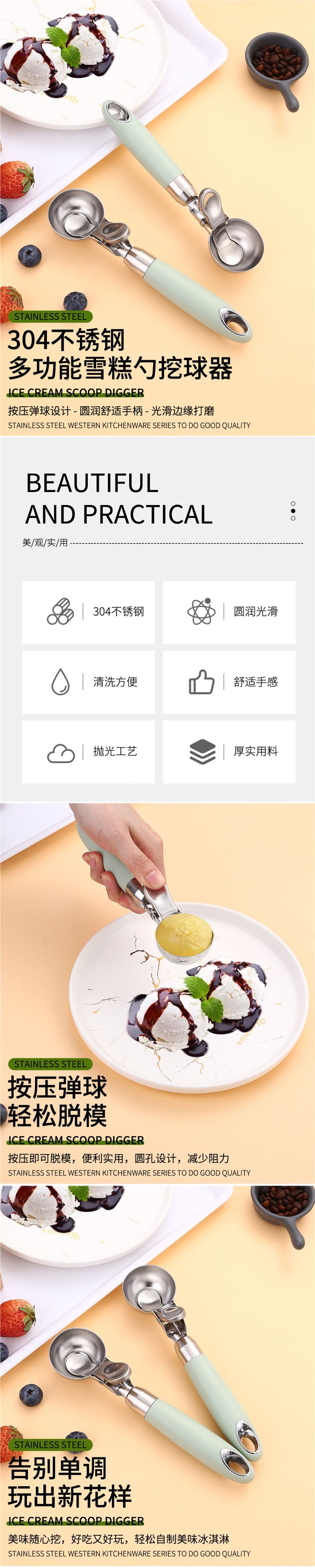 Обновите ложку для фруктов; Модернизированная всплывающая ложка для мороженого.; Выдвижная ложка для мороженого