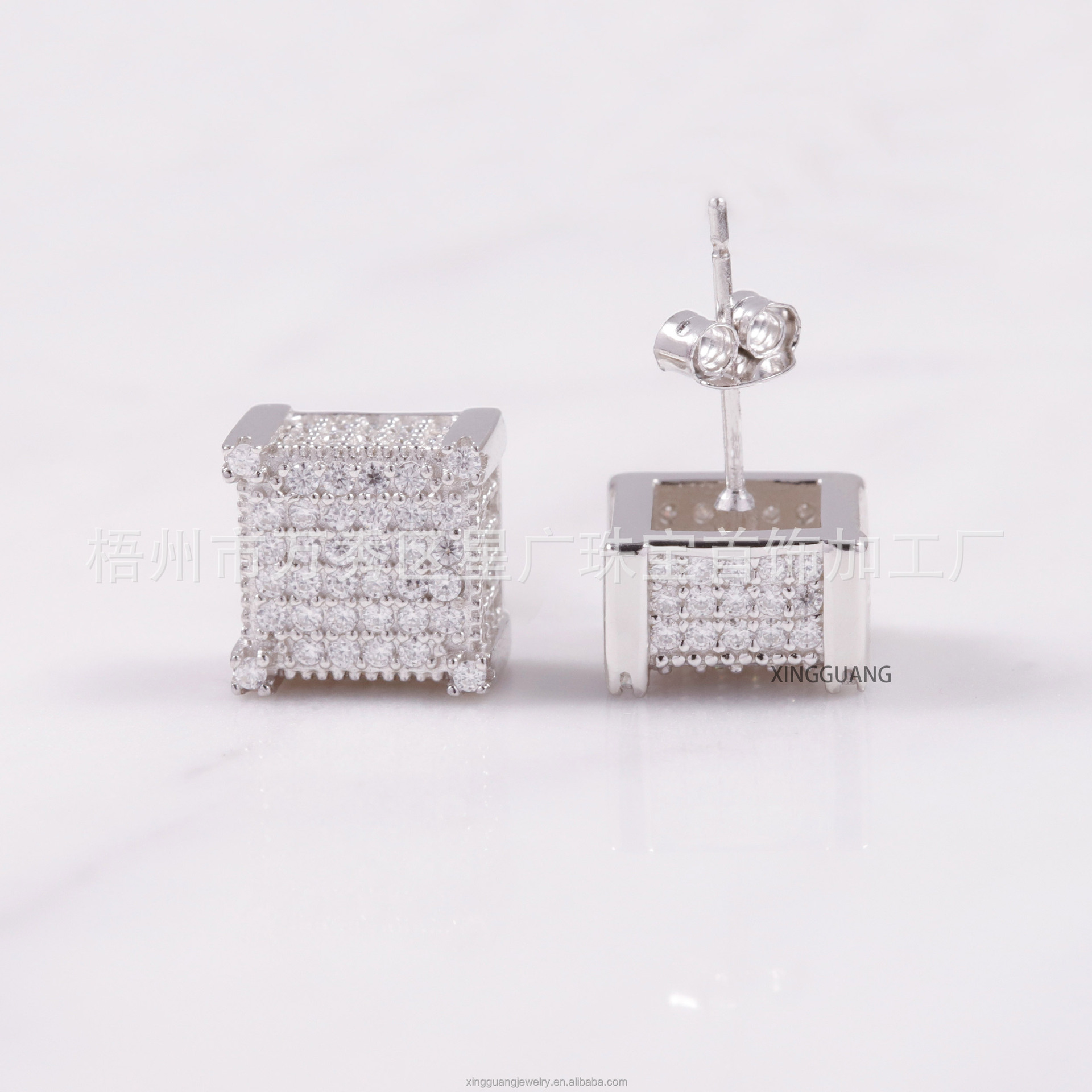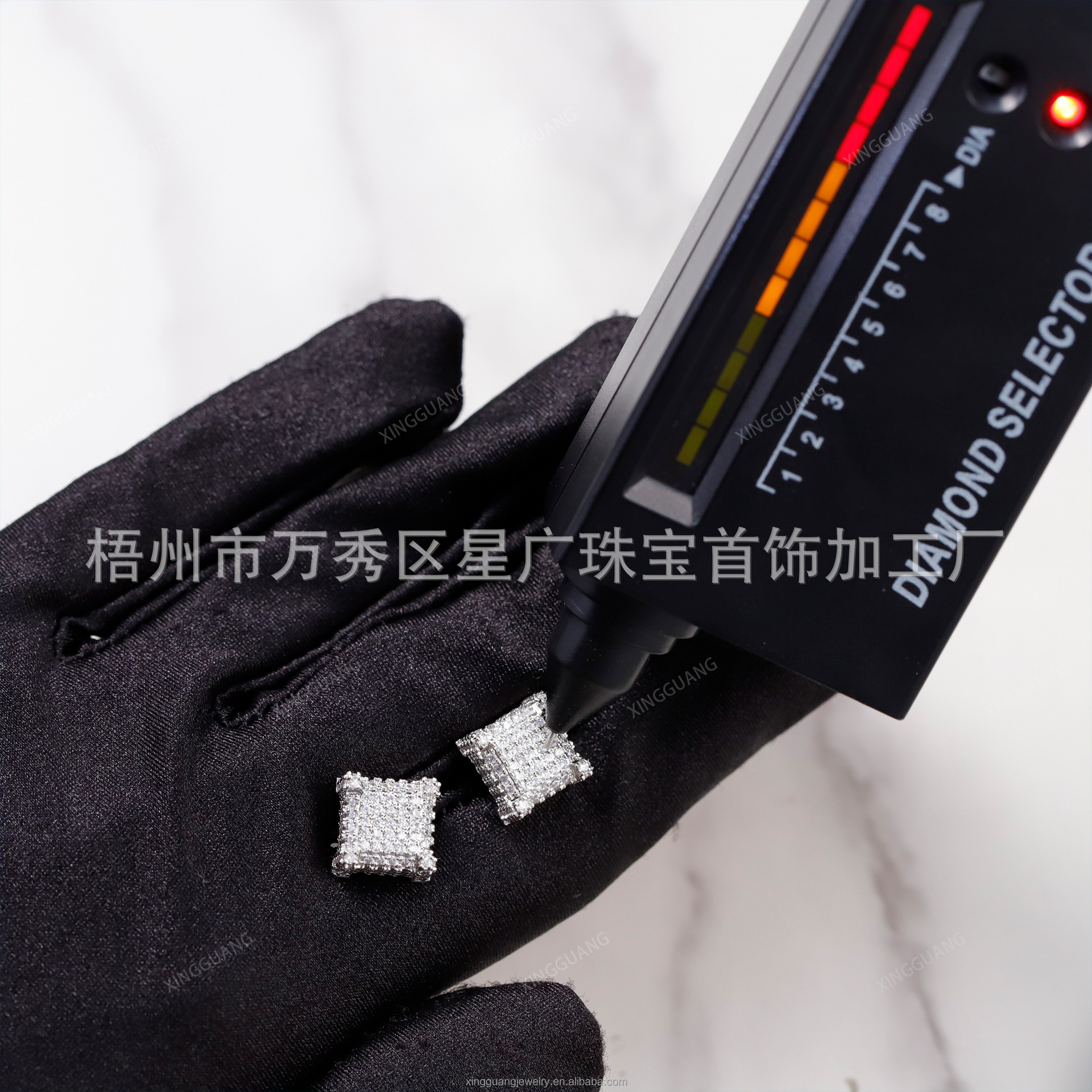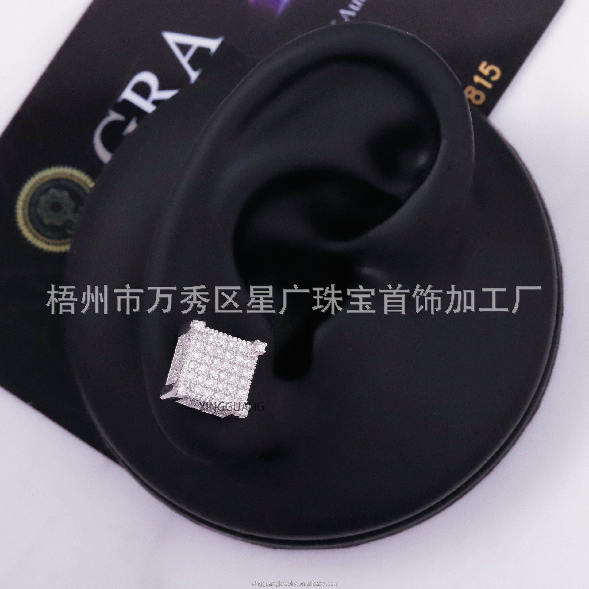 Серьги в стиле европейского и американского хип-хопа, классические квадратные, одинаковый стиль для мужчин и женщин, полный комплект персонализированных модных брендовых сережек из серебра 925 пробы с муассанитом в наличии.