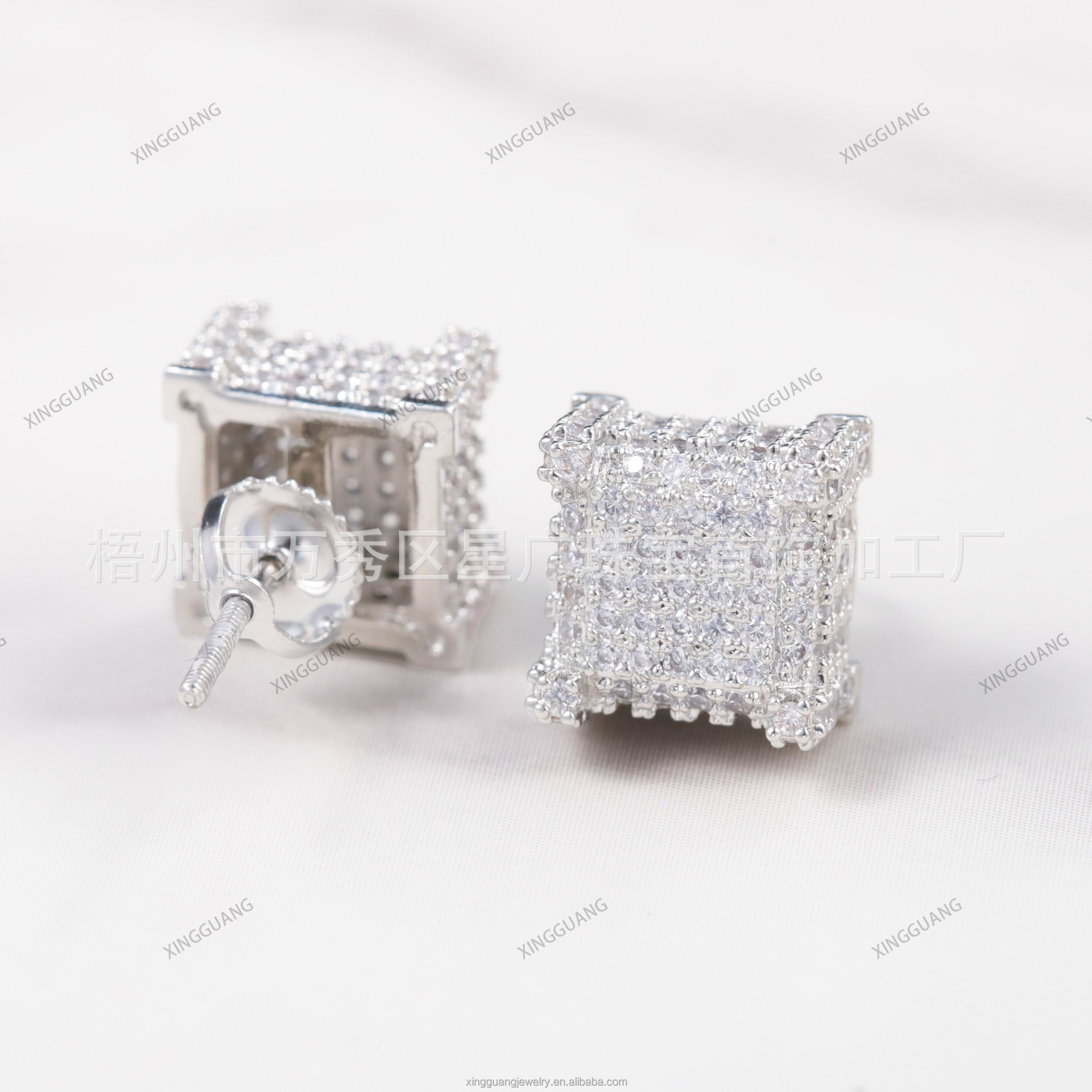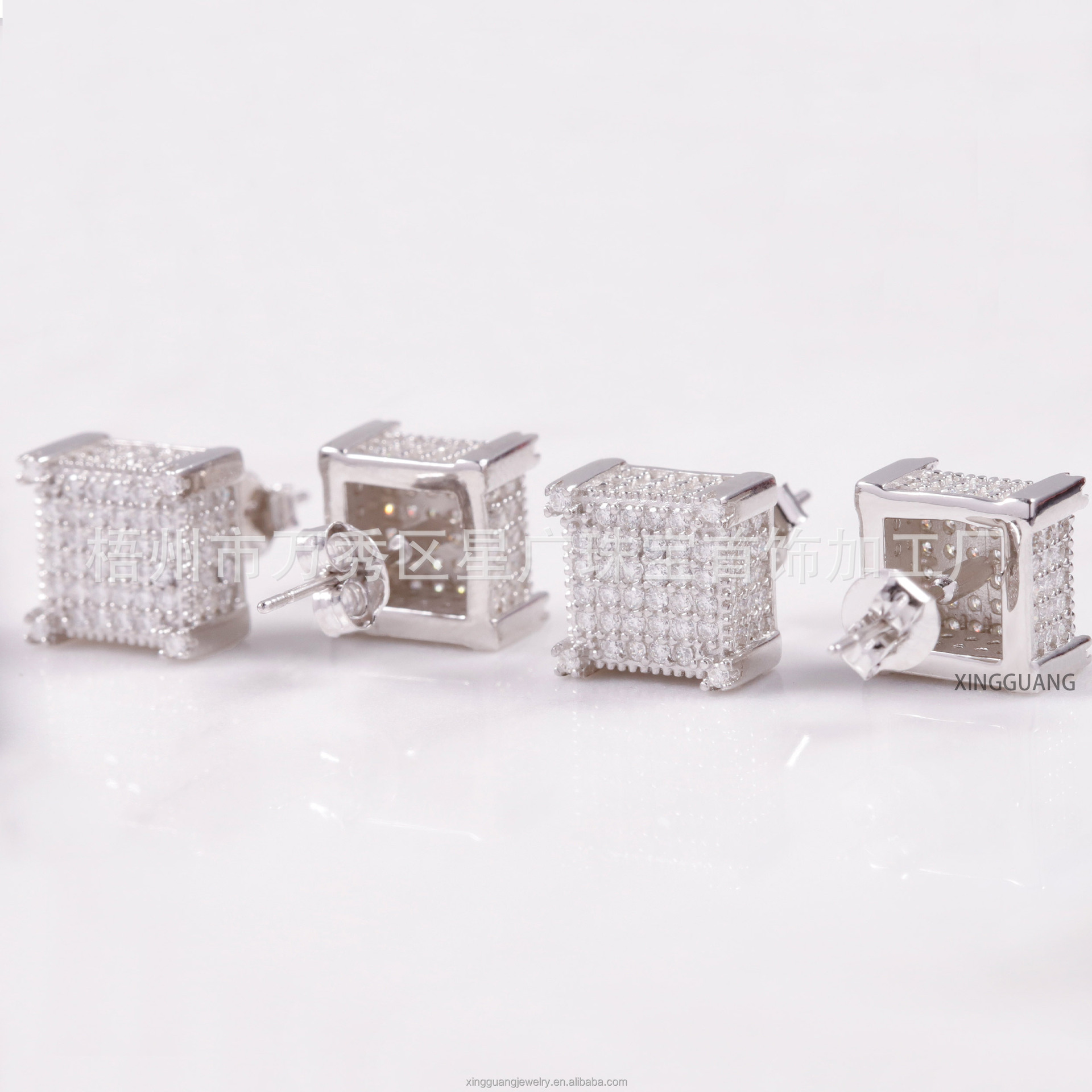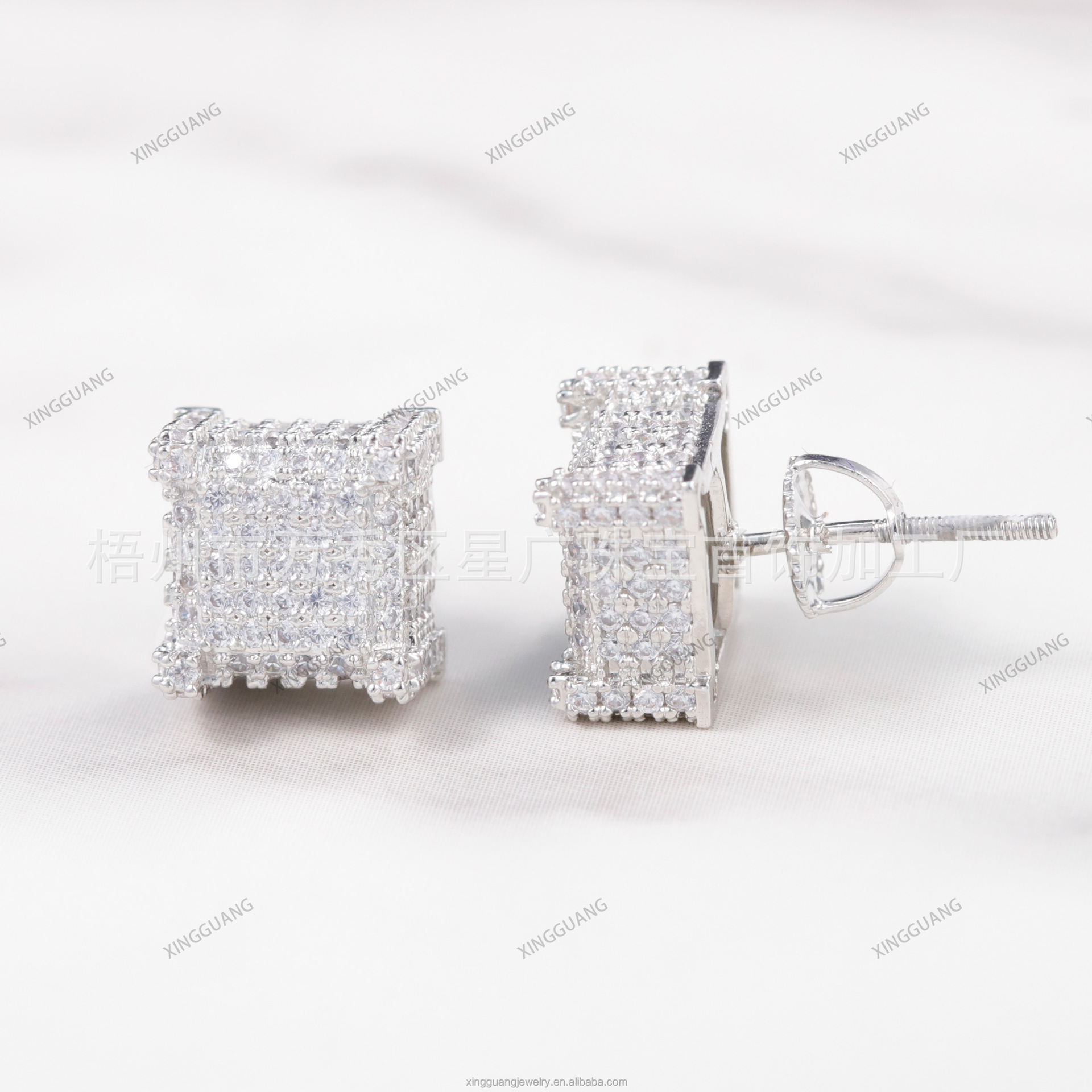 Серьги в стиле европейского и американского хип-хопа, классические квадратные, одинаковый стиль для мужчин и женщин, полный комплект персонализированных модных брендовых сережек из серебра 925 пробы с муассанитом в наличии.