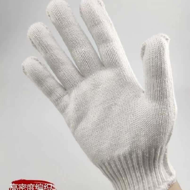 Утолщенные защитные перчатки из хлопчатобумажной нити с шифрованием, прочные и износостойкие для строительных работ, оптовая продажа нескользящей белой хлопчатобумажной пряжи.