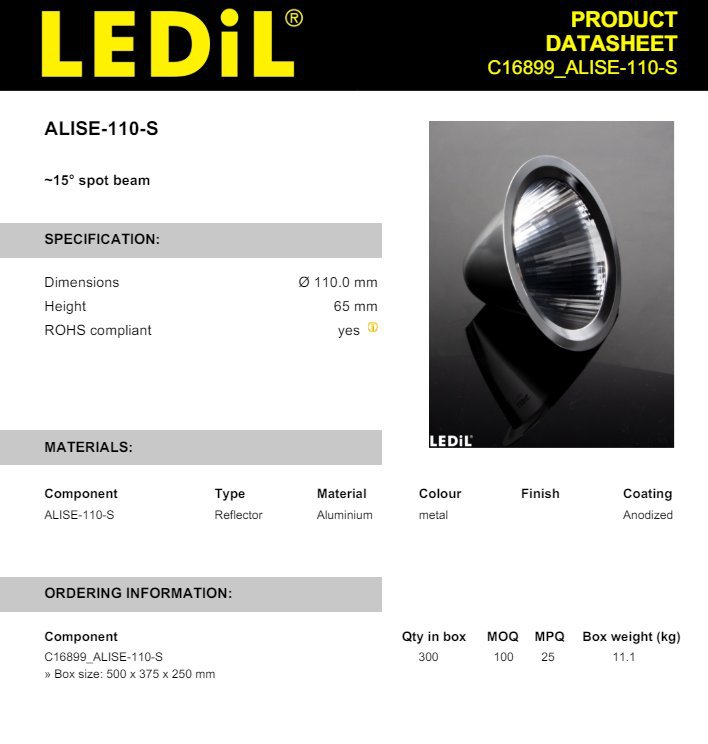 Промышленное осветительное оборудование LEDiL C16899 с линзой из высокопрочного поликарбоната, диаметр 110 мм, оптом