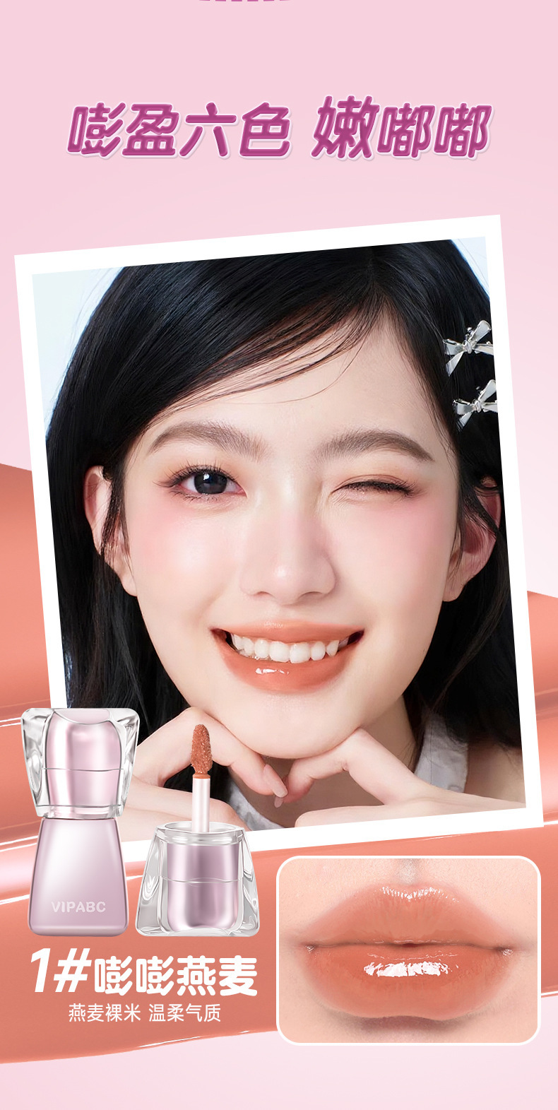 VIPABC водно-глянцевое зеркало, пухлые губы, увлажняющее, нежное, прозрачное и отбеливающее, водно-глянцевая глазурь для пухлых губ, натуральный студент без макияжа
