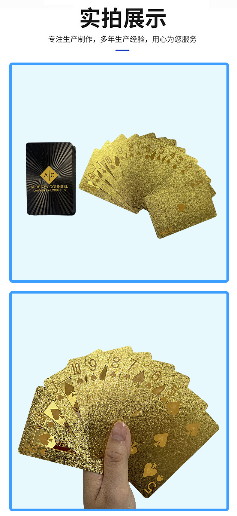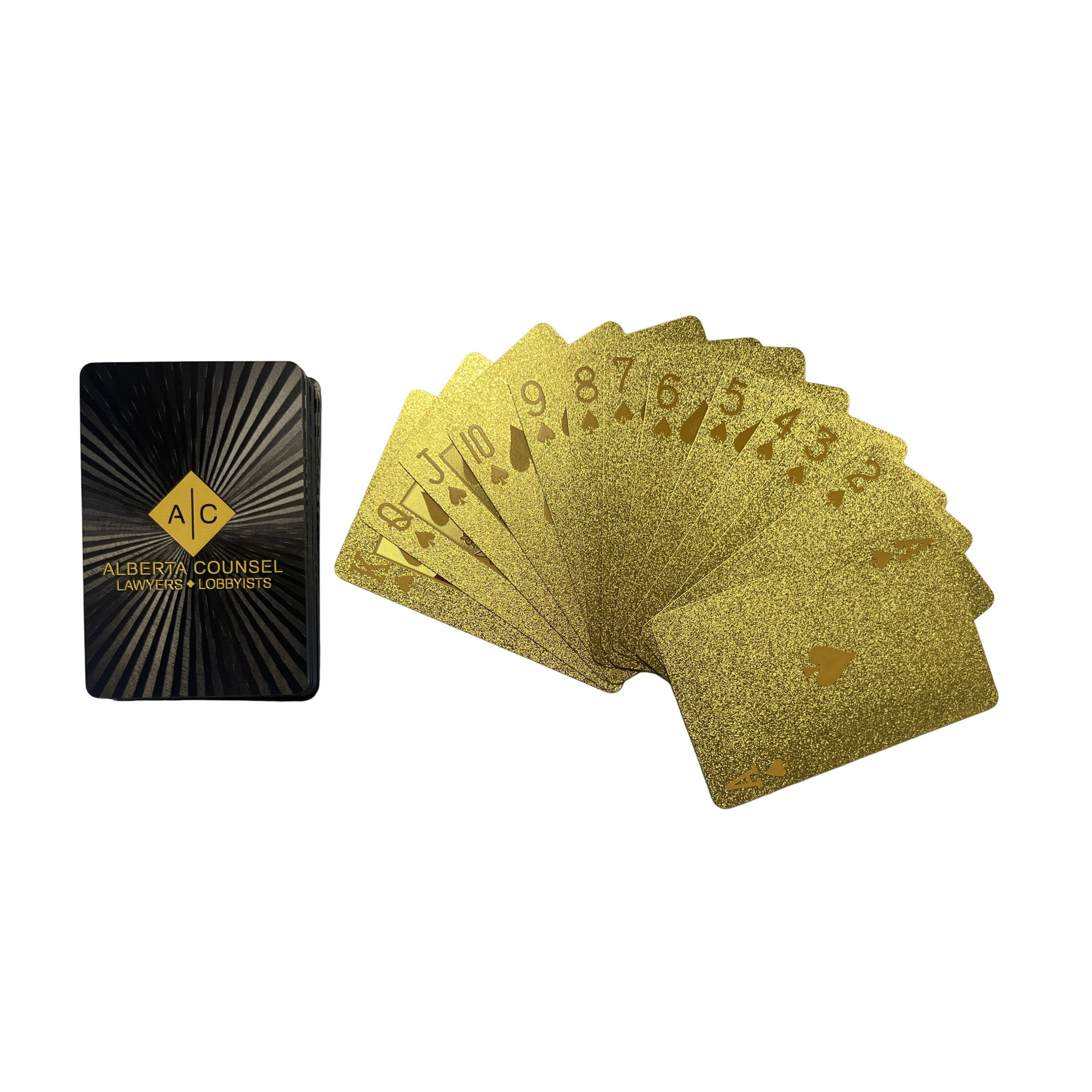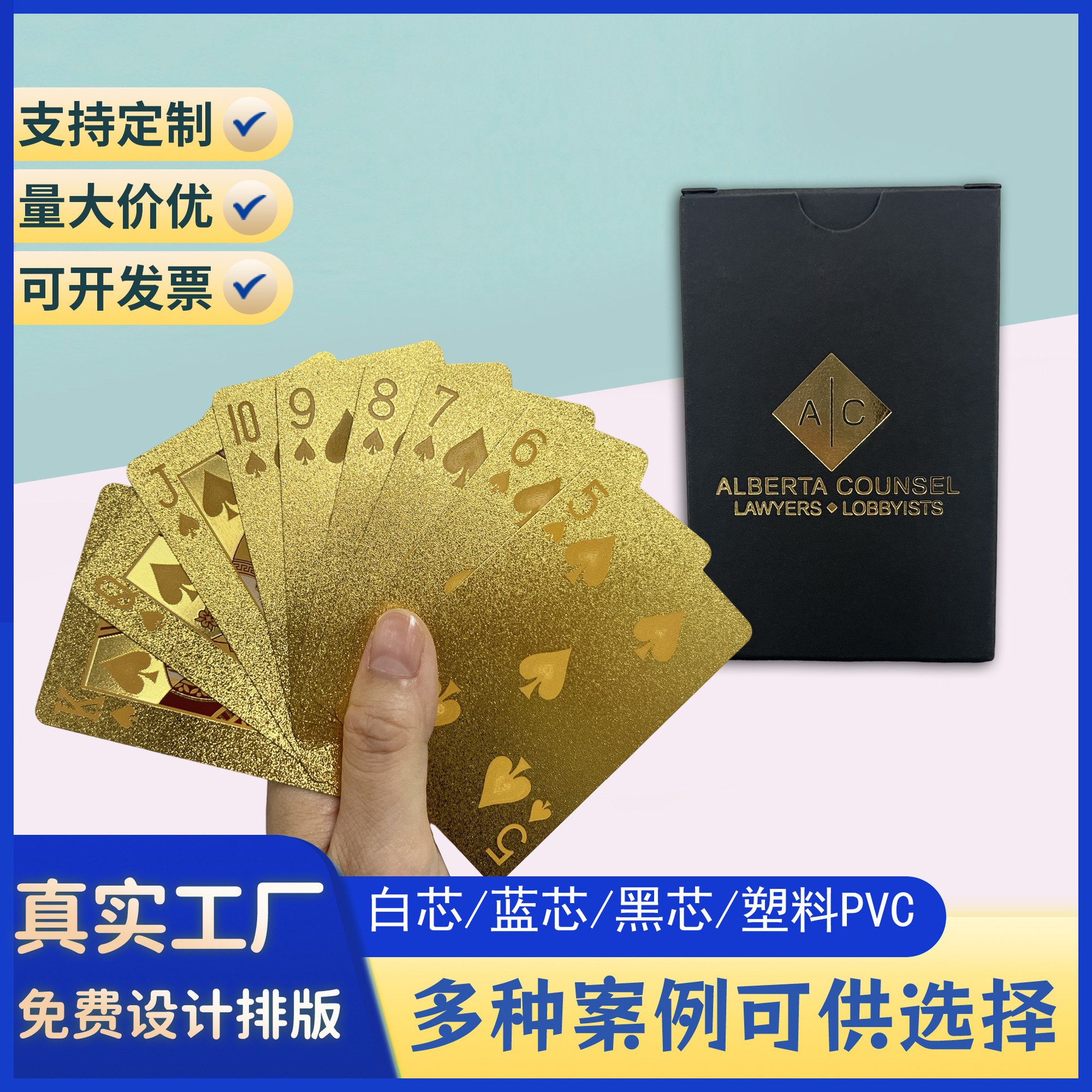 Прямые поставки фабрики золотых фольгированных игральных карт в наличии оптом ПВХ пластиковые водонепроницаемые игральные карты бизнес-подарки с возможностью нанесения логотипа