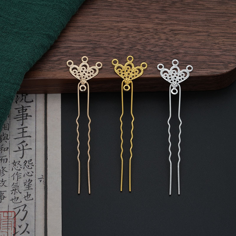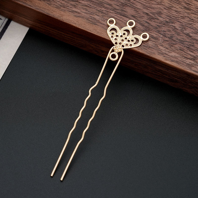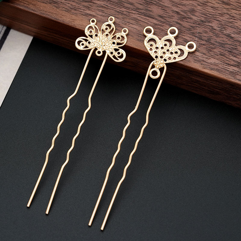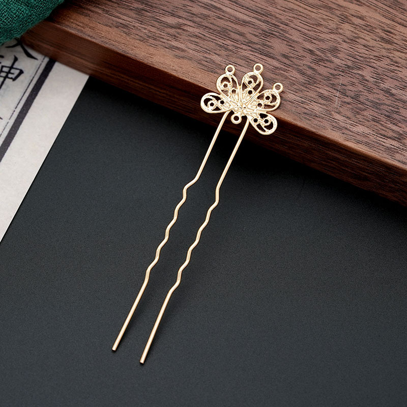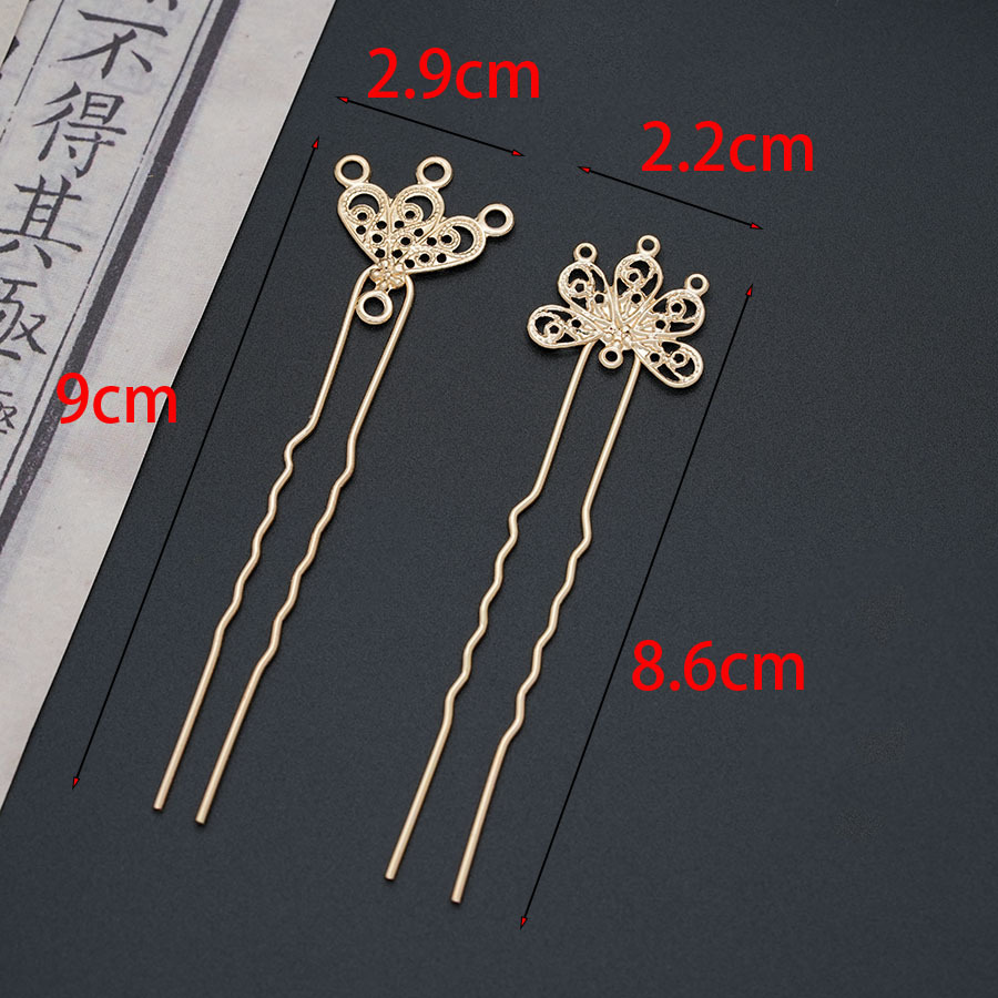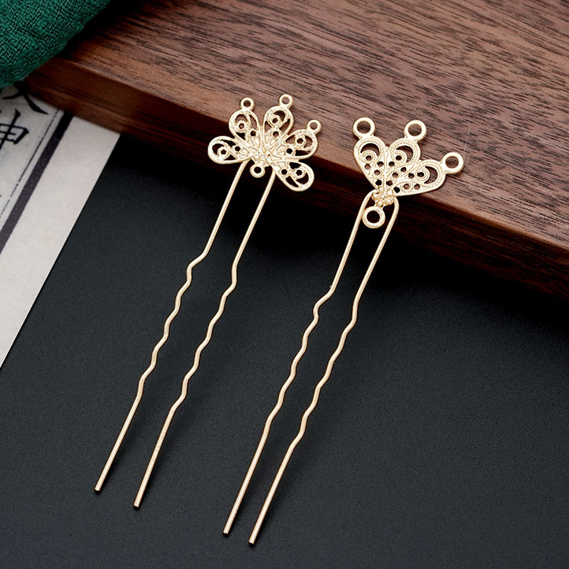 Аксессуары для волос в древнем стиле, литая медная заколка для волос с бабочкой и цветком, U-образная волнистая заколка для волос, дворцовые аксессуары для волос династии Хань, аксессуары для головного убора