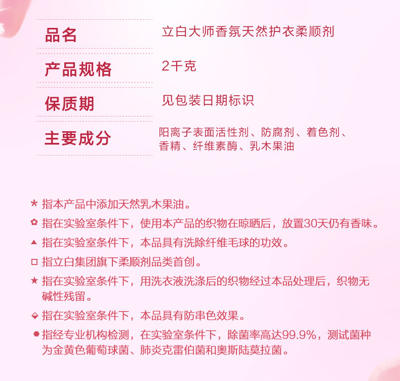 100 г пакет Libai Master Fragrance [Кондиционер для белья]; Пакет 500 г смягчителя Liby [Мастер Аромат]; Мешок 1 кг Libai Master Fragrance [Кондиционер для белья]; Бутылка 2 кг Libai Master Fragrance [Кондиционер для белья]; Мешок 500 г кондиционера для белья Liby с ароматом лаванды; 1 л пакет смягчителя для ткани Liby с ароматом лаванды; Бутылка 2 л кондиционера для белья с ароматом лаванды Liby; Мешок 3 кг кондиционера для белья Liby с ароматом лаванды