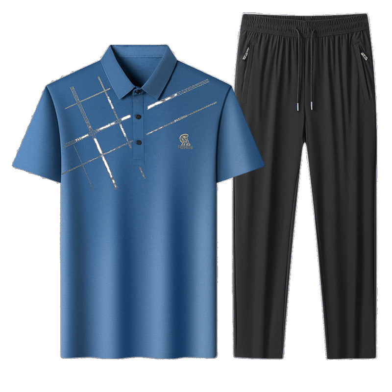 Летний популярный костюм из ледяного шелка с лацканами, короткими рукавами, для мужчин среднего и старшего возраста, деловой повседневный поло, двухкомпонентный костюм для папы