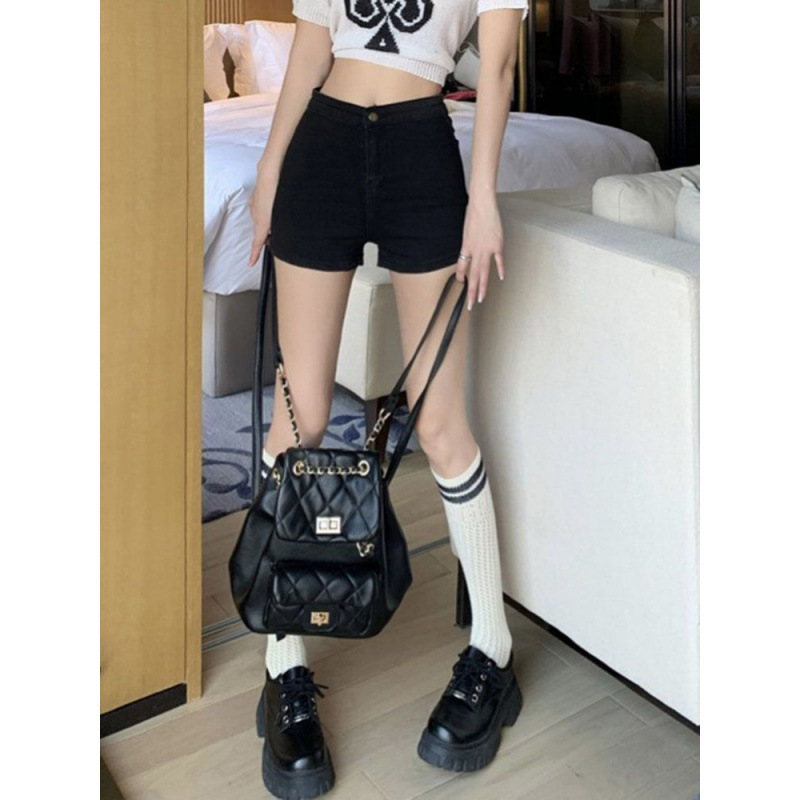 Джинсовые шорты для женщин, модные весенние 2025, новые, высокая талия, обтягивающие, черные, микроэластичные, закрывающие бедра, короткие.