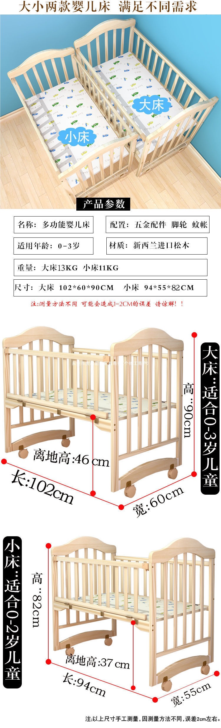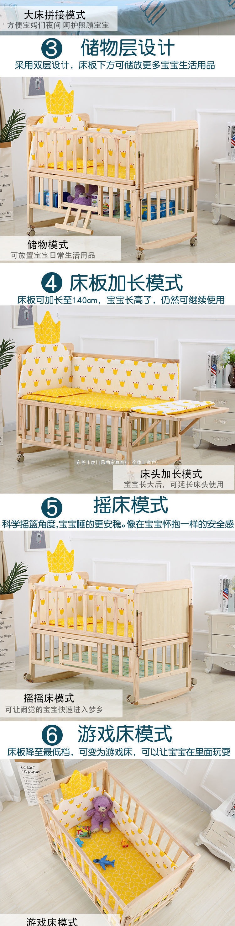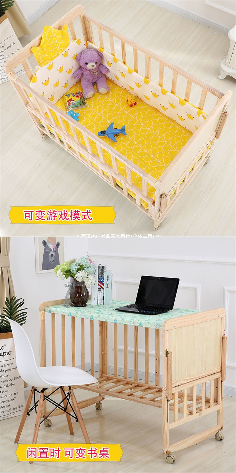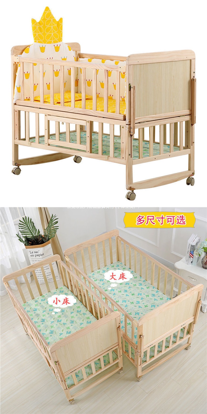 Кроватка из цельного дерева для новорожденных, экологически чистая детская кровать без краски, колыбель, съемный стол, большая кровать